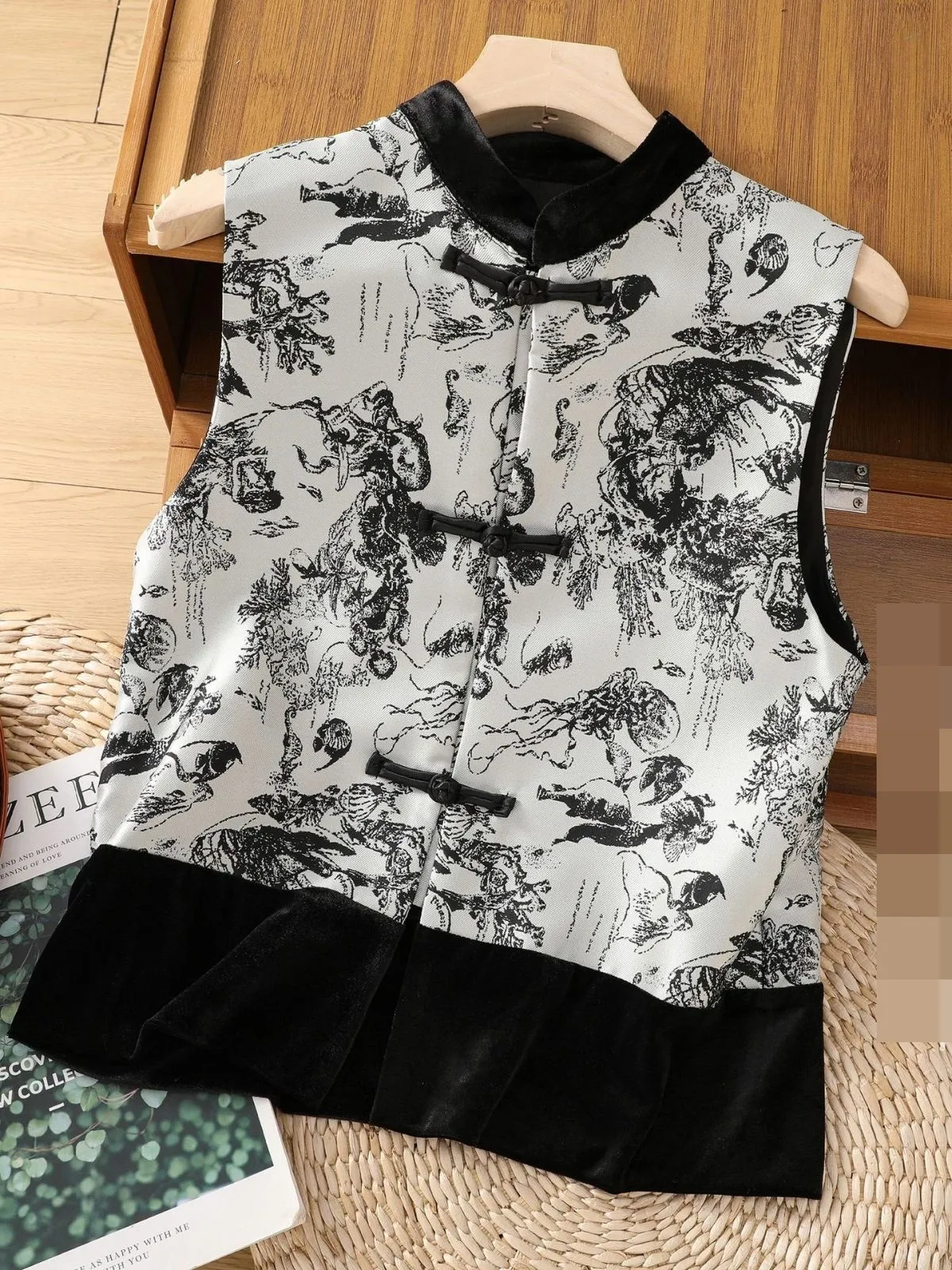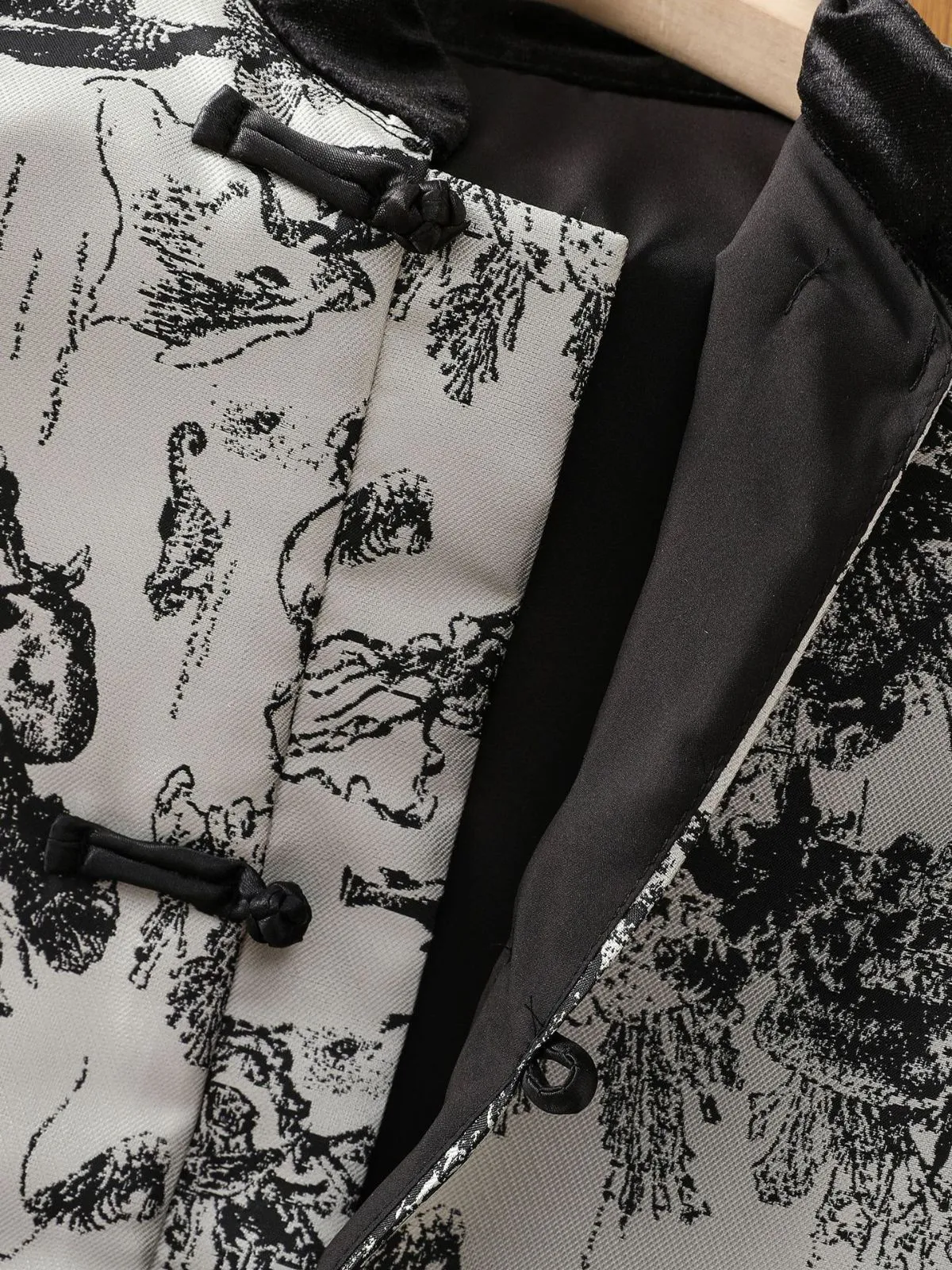 衣都精品- 2023新款復古立領盤扣水墨畫印花外套