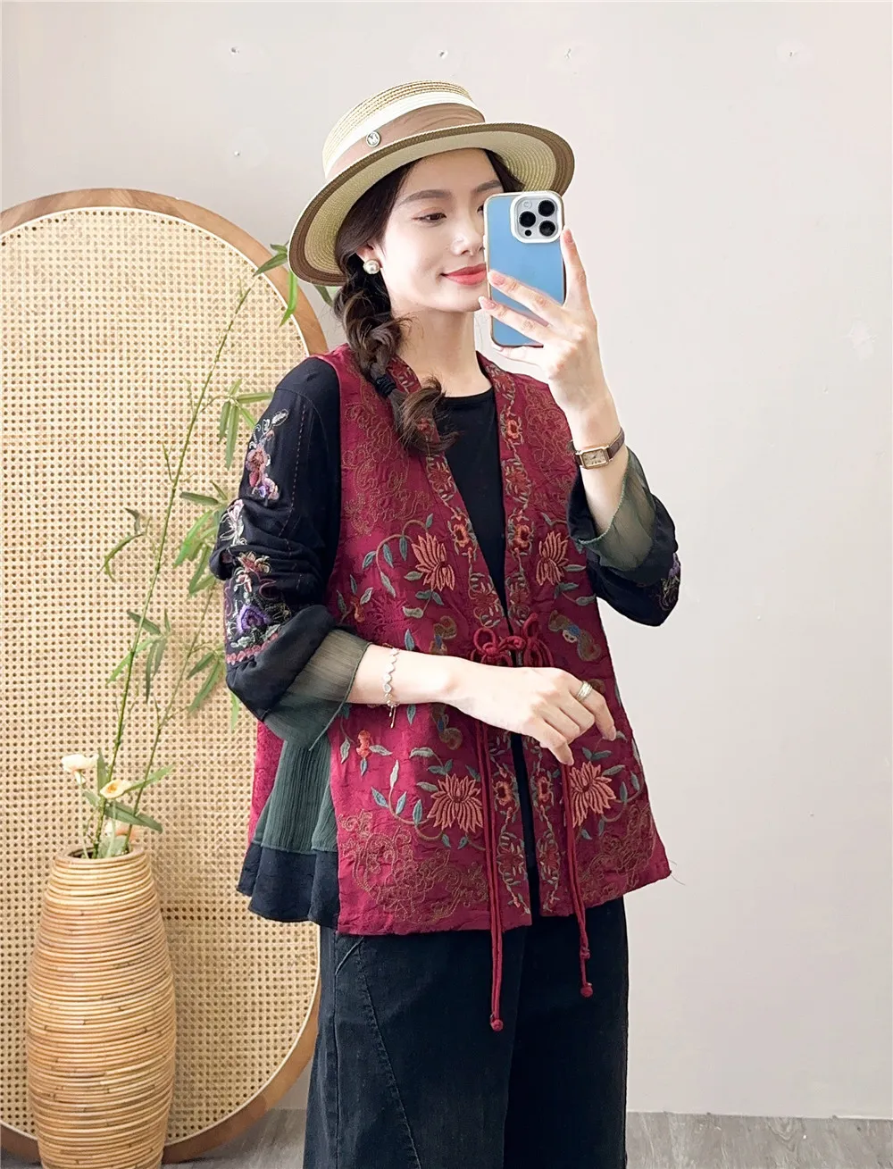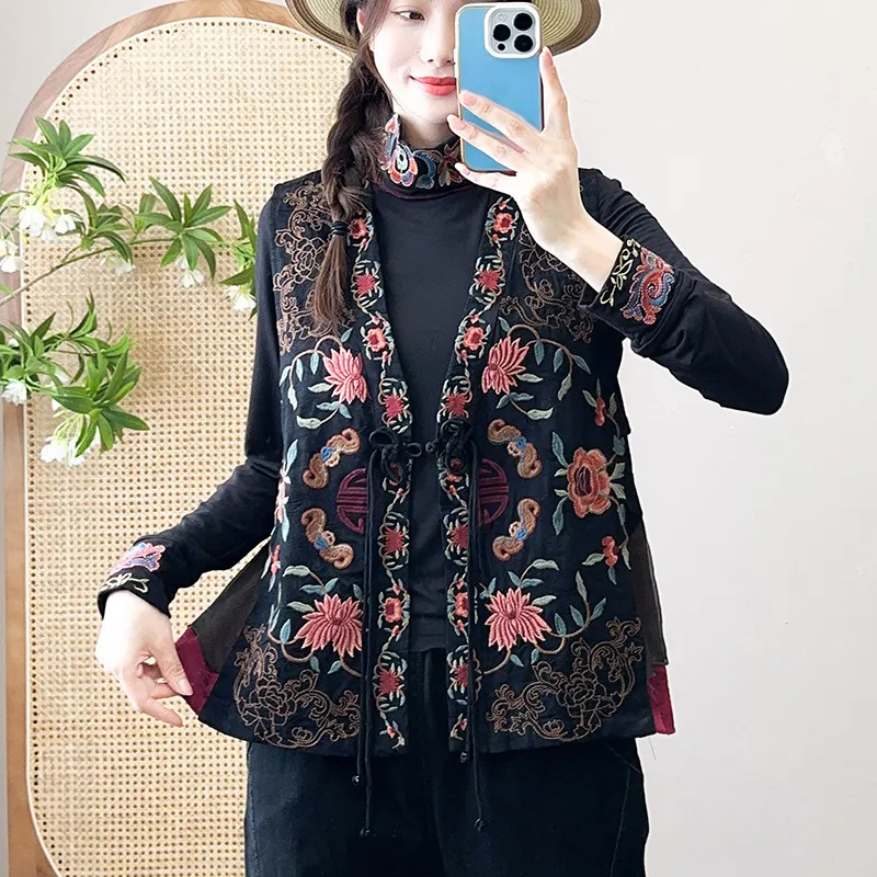 衣都精品- 2023新款民族風繡花無袖開衫盤扣短款外套