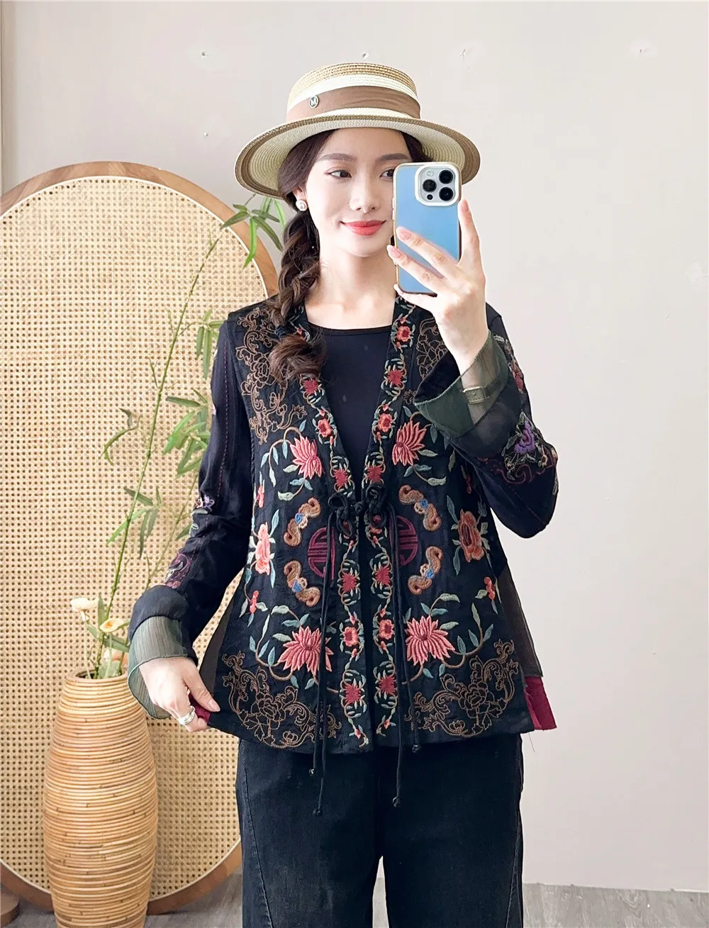衣都精品- 2023新款民族風大碼盤扣刺繡中長款外套