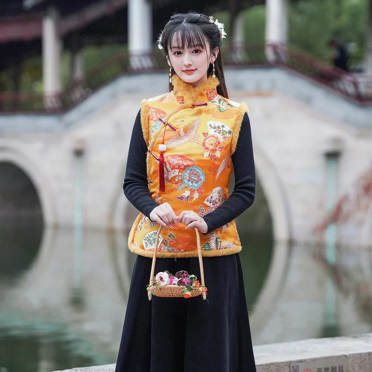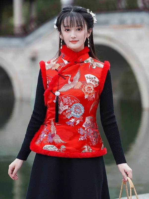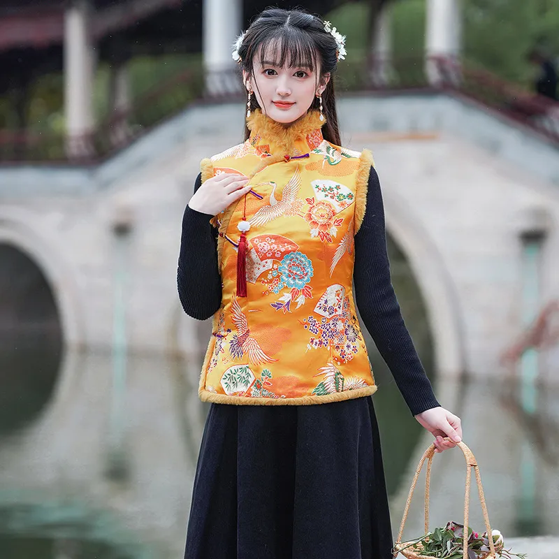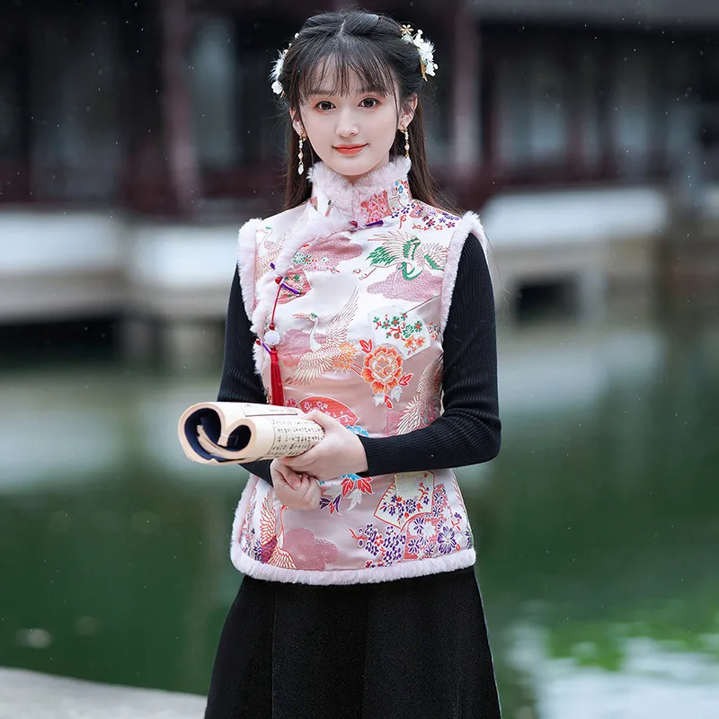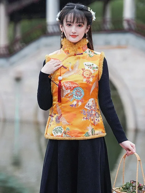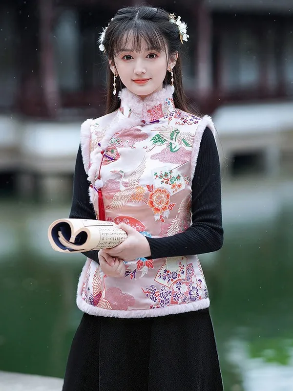 衣都精品- 2023新款復古刺繡提花毛領夾棉旗袍外套