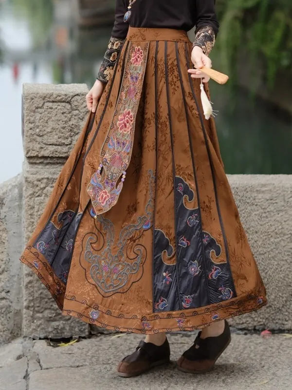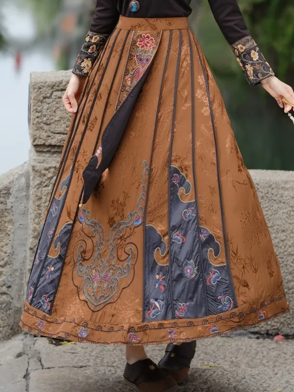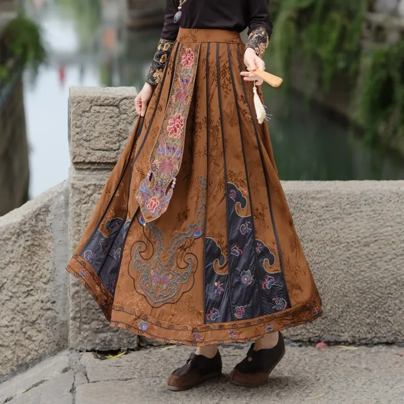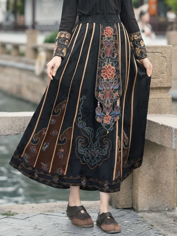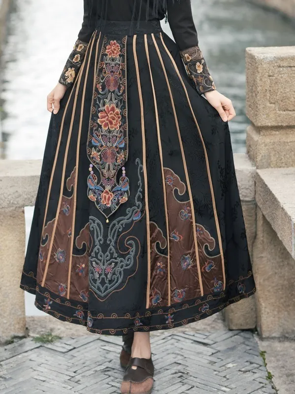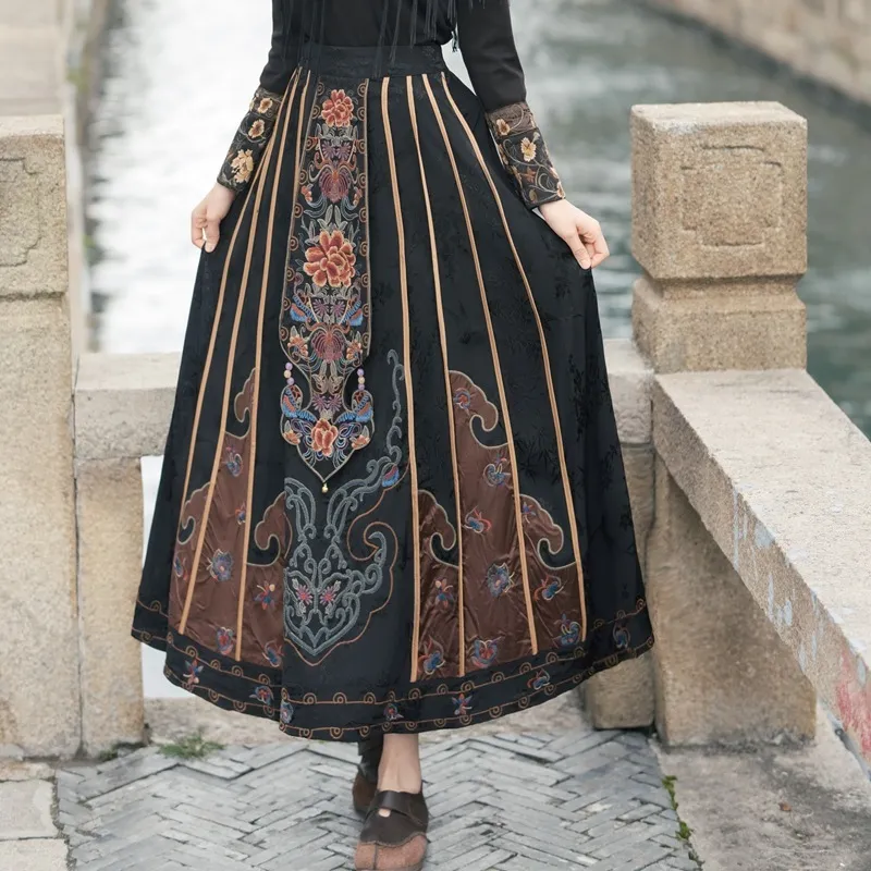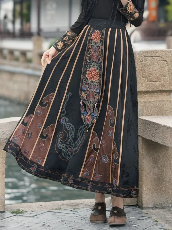 衣都精品- 2023新款復古繡花鬆緊腰大擺半身裙