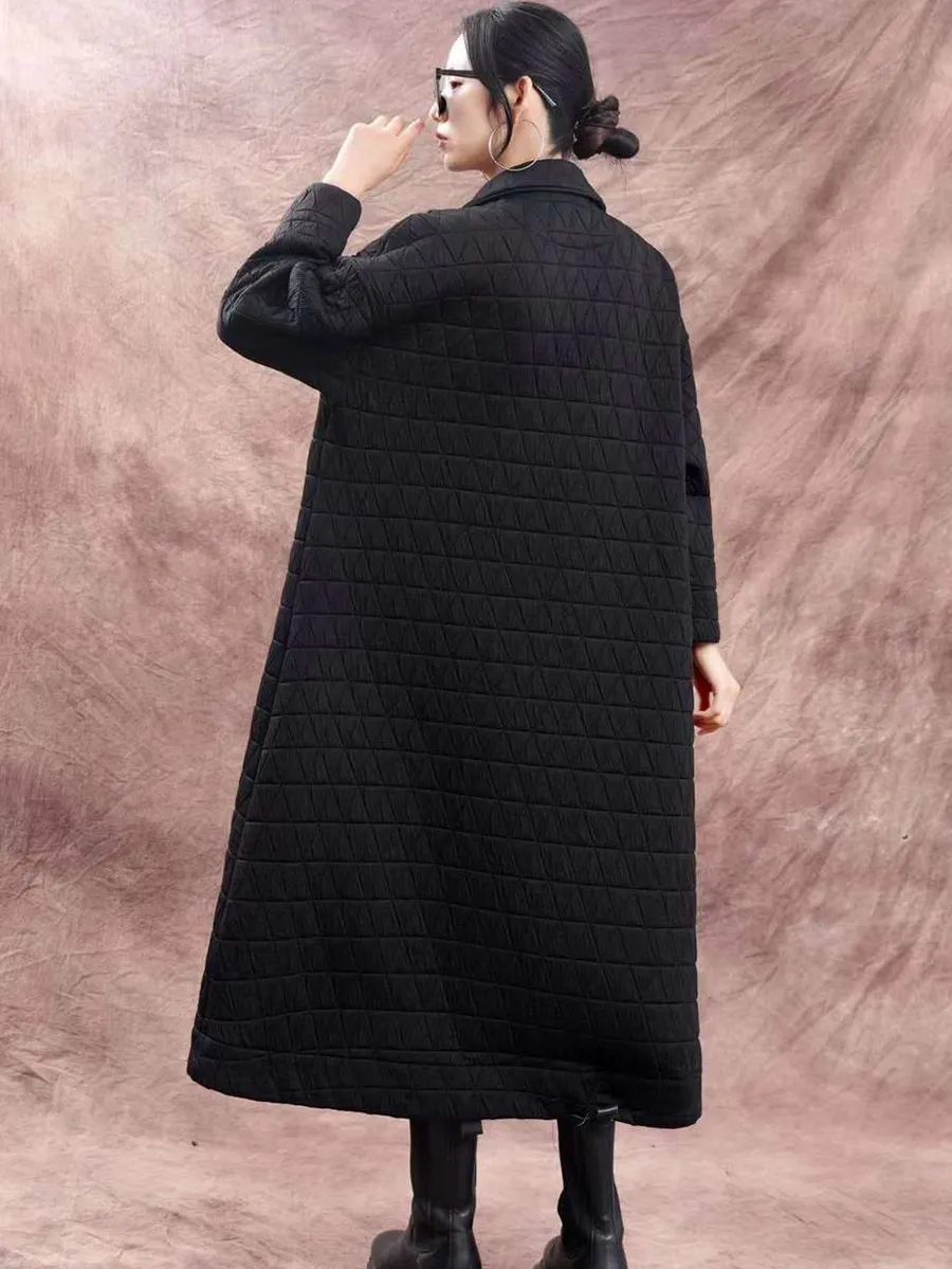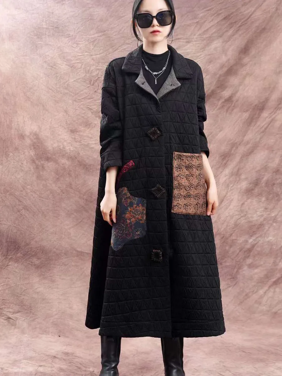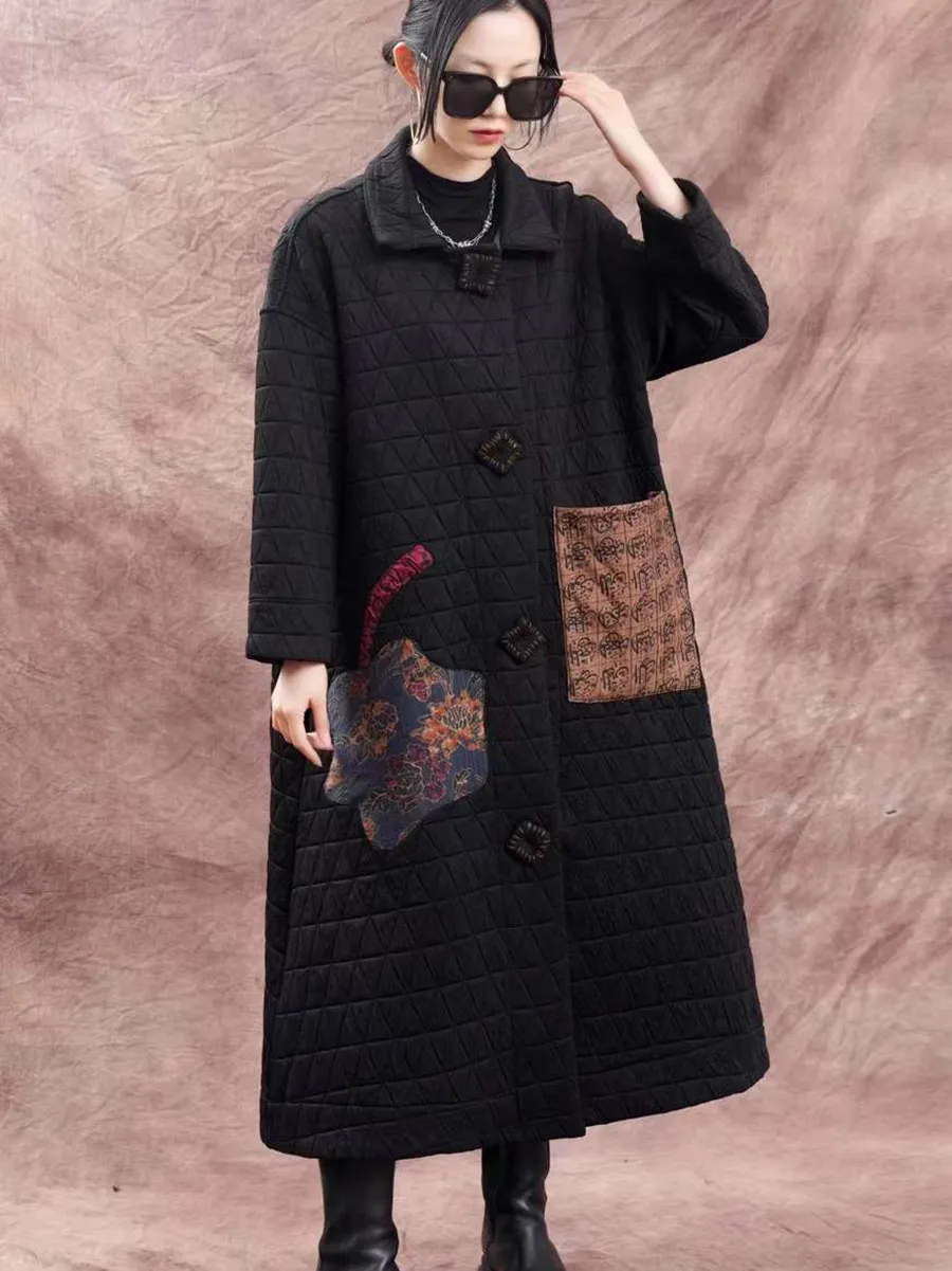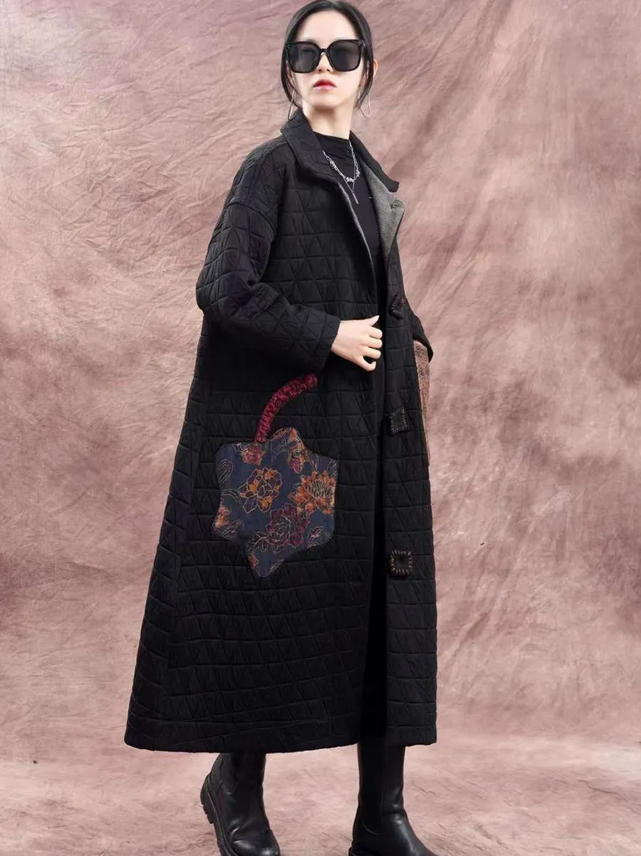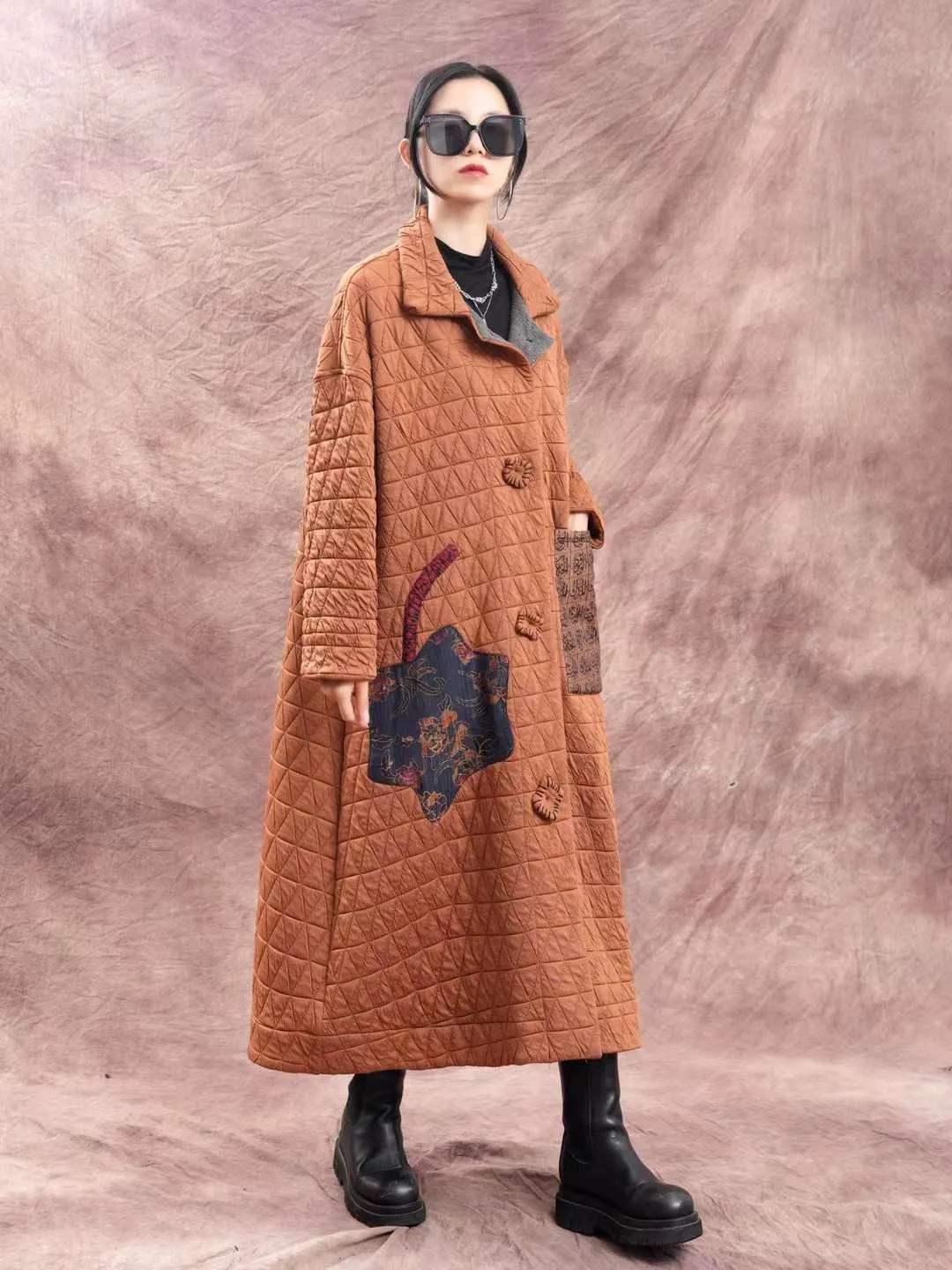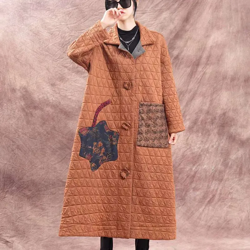 衣都精品- 2023新款大碼寬鬆貼布文藝翻領泡泡棉外套