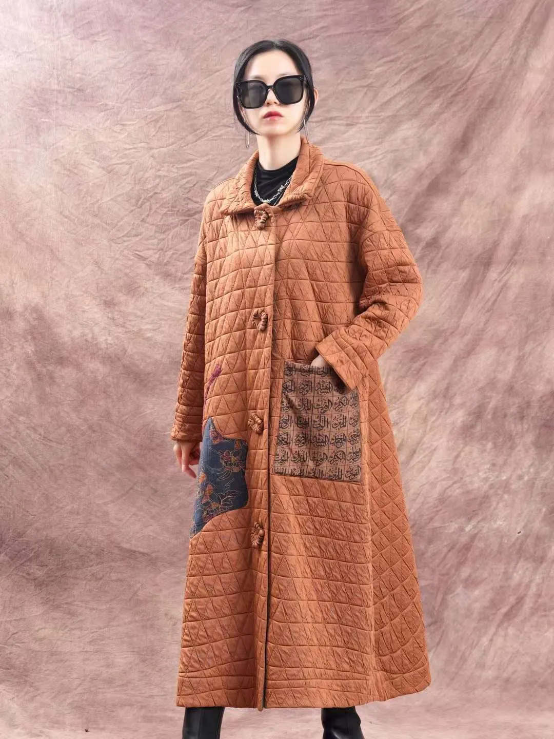 衣都精品- 2023新款民族風亞麻混紡高領長款外套