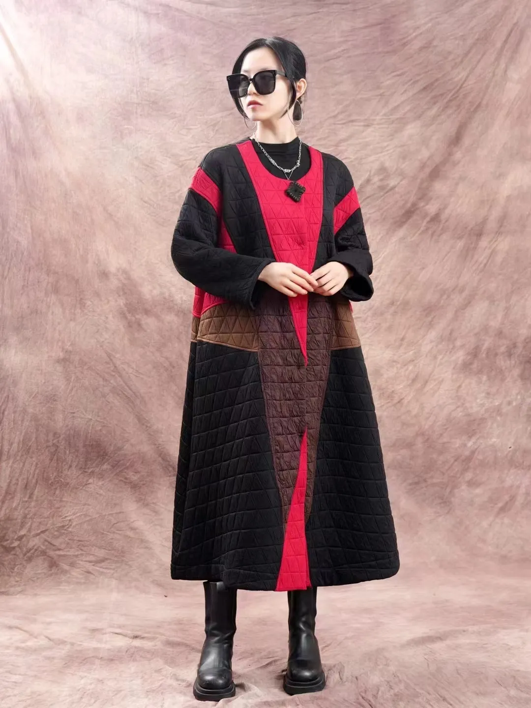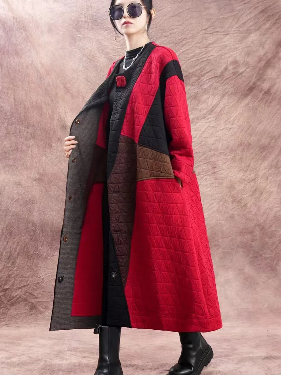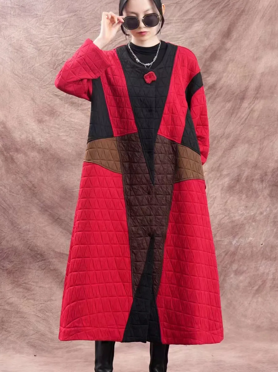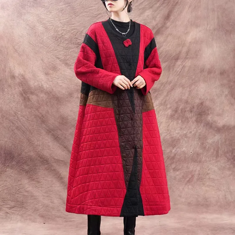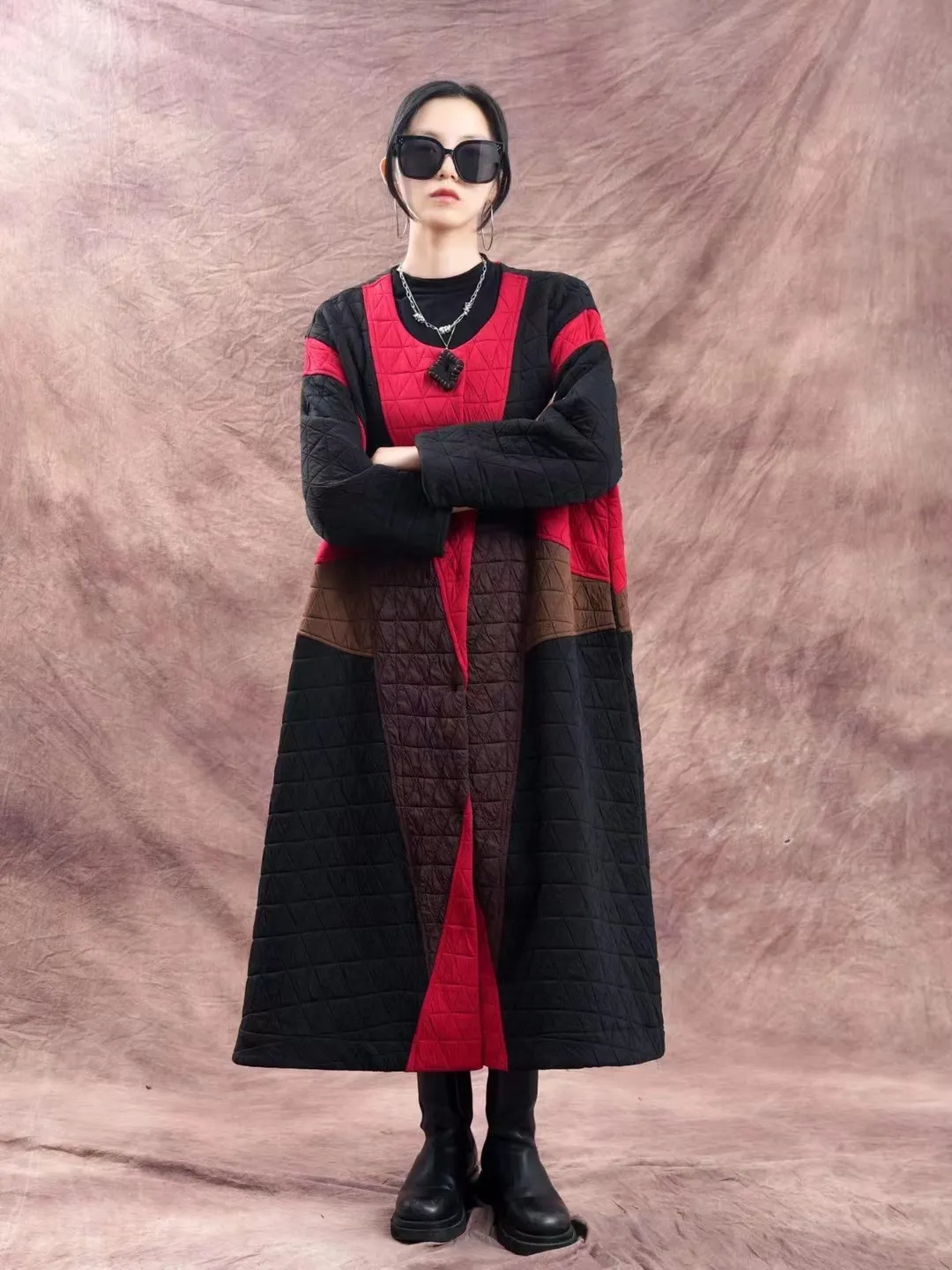 衣都精品- 2023新款文藝拼接撞色加長款外套