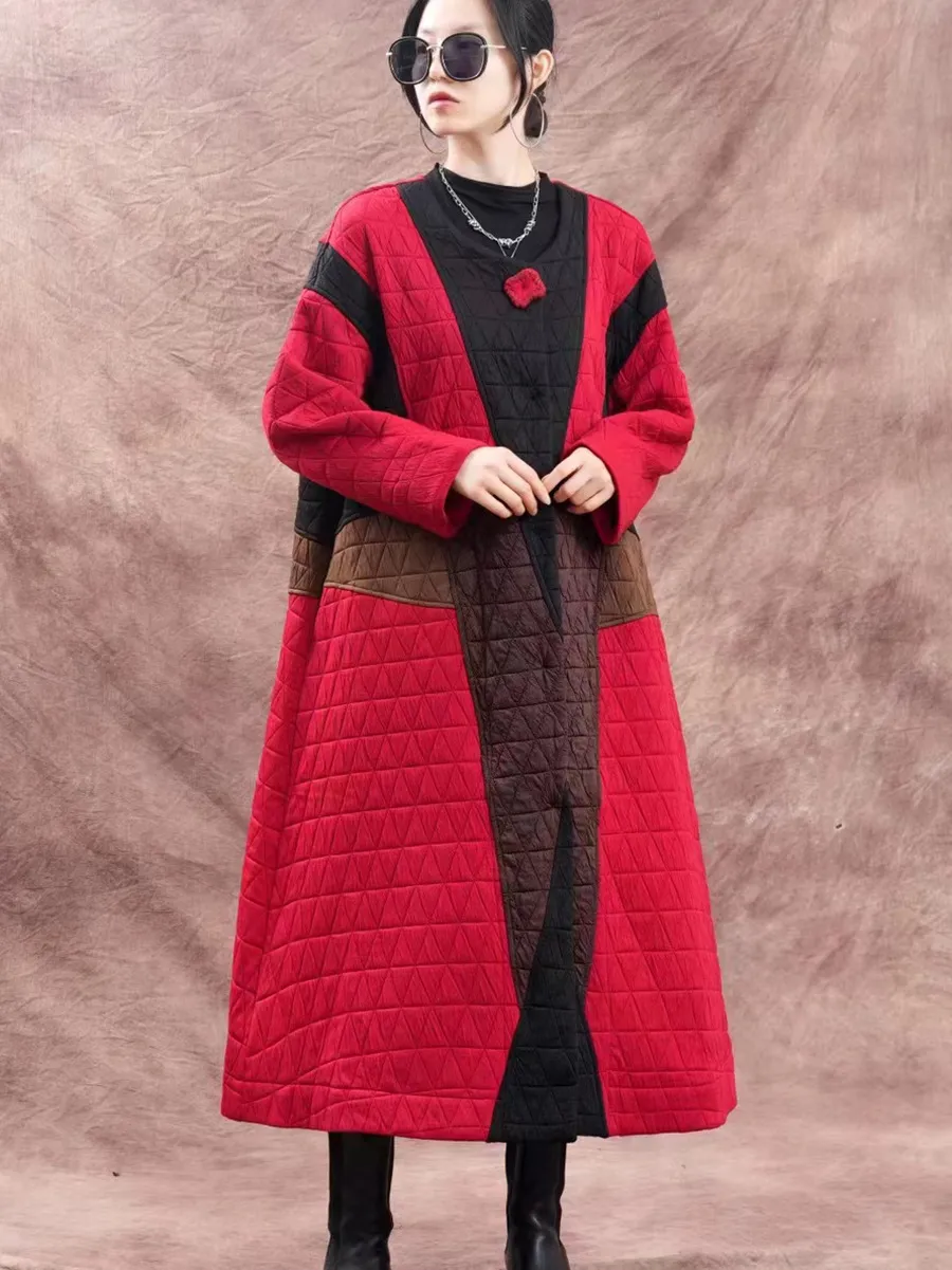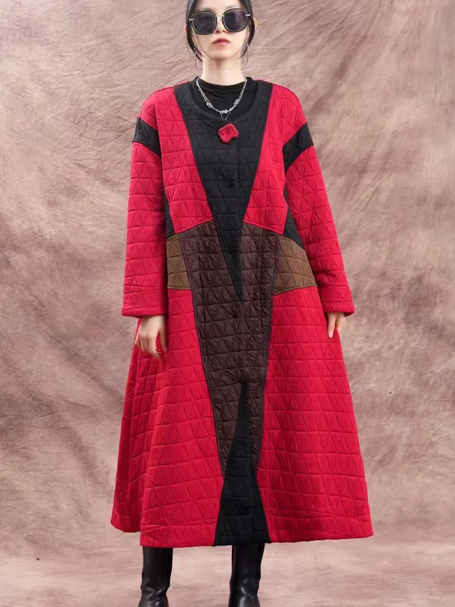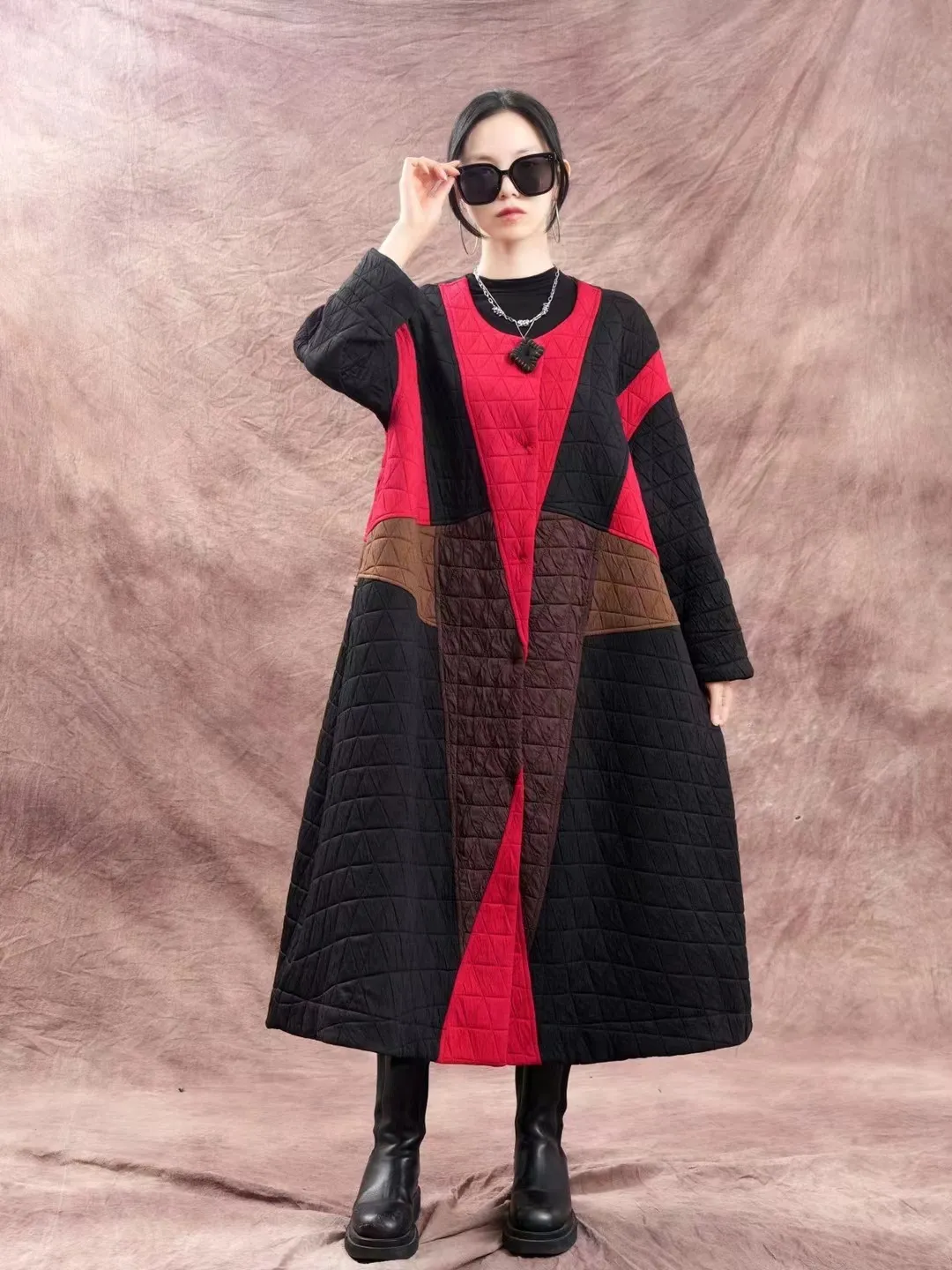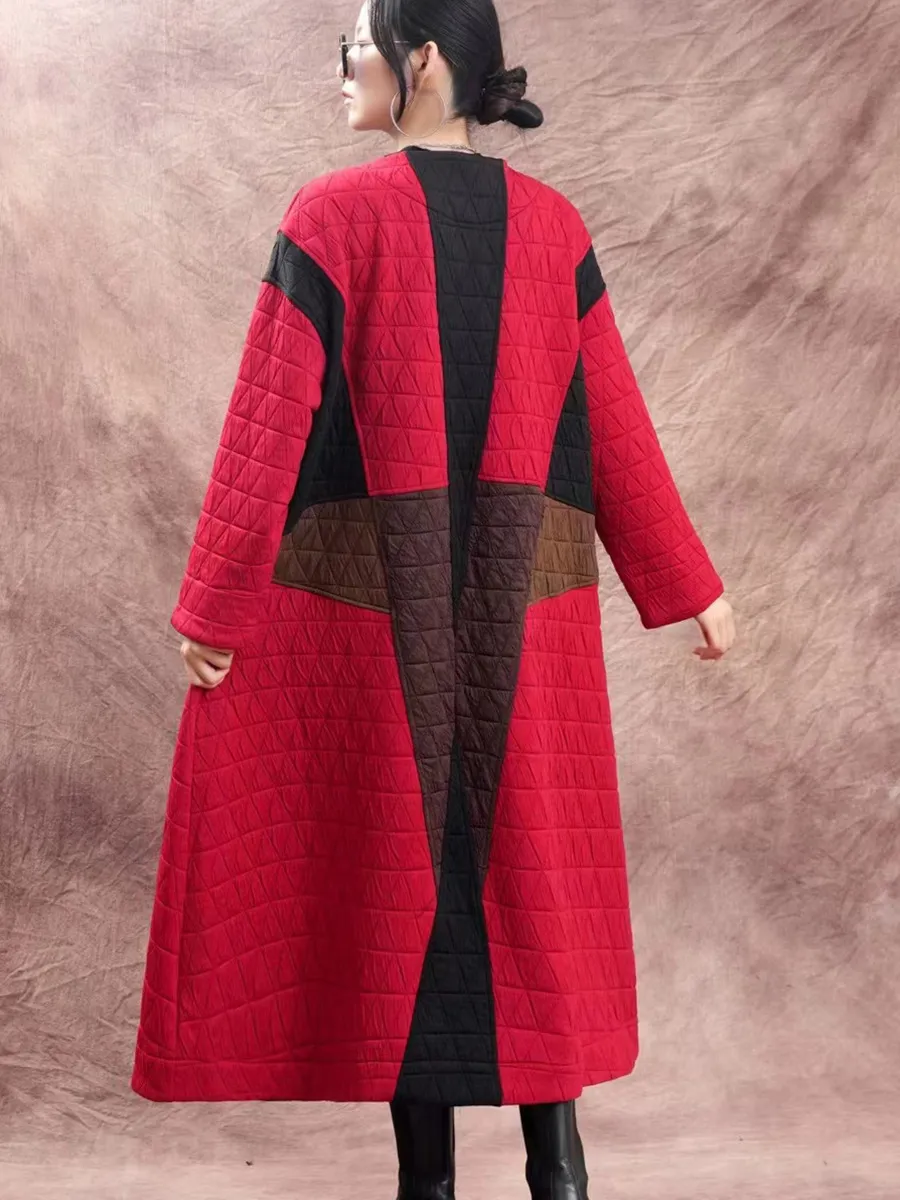 衣都精品- 2023新款文藝拼接撞色加長款外套