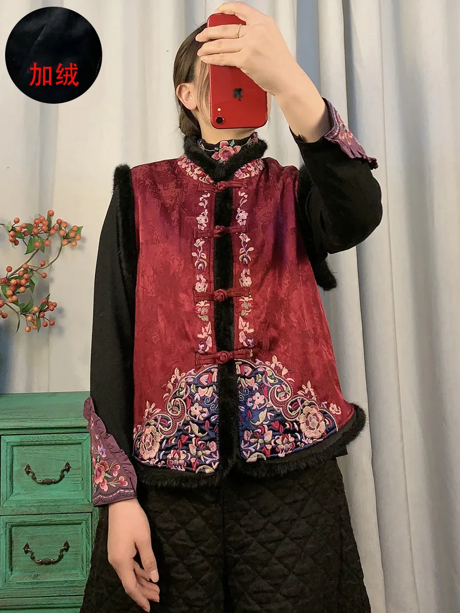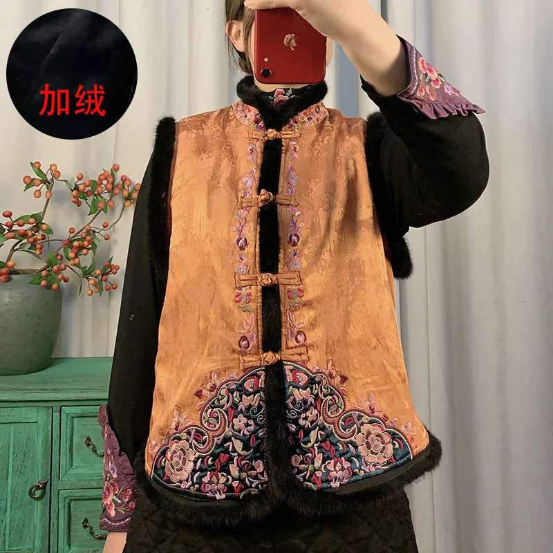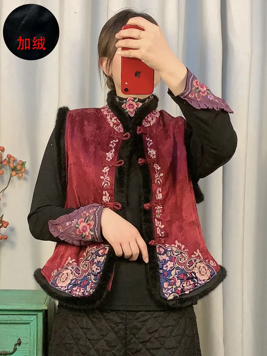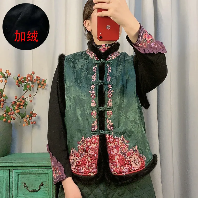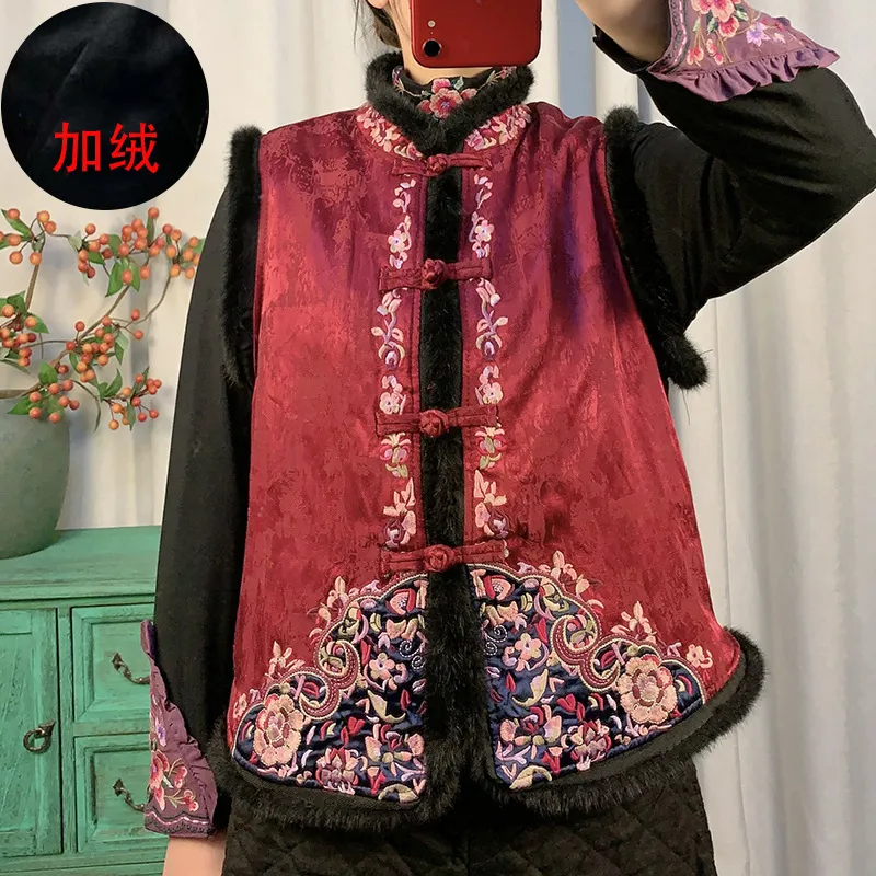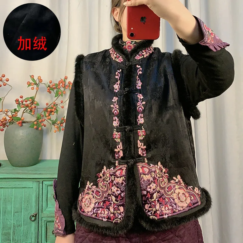 衣都精品- 2023新款民族風提花刺繡拼接加絨外套
