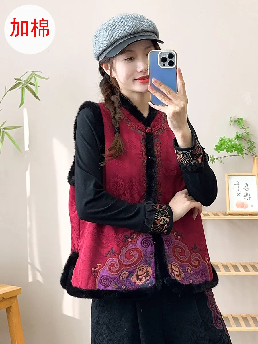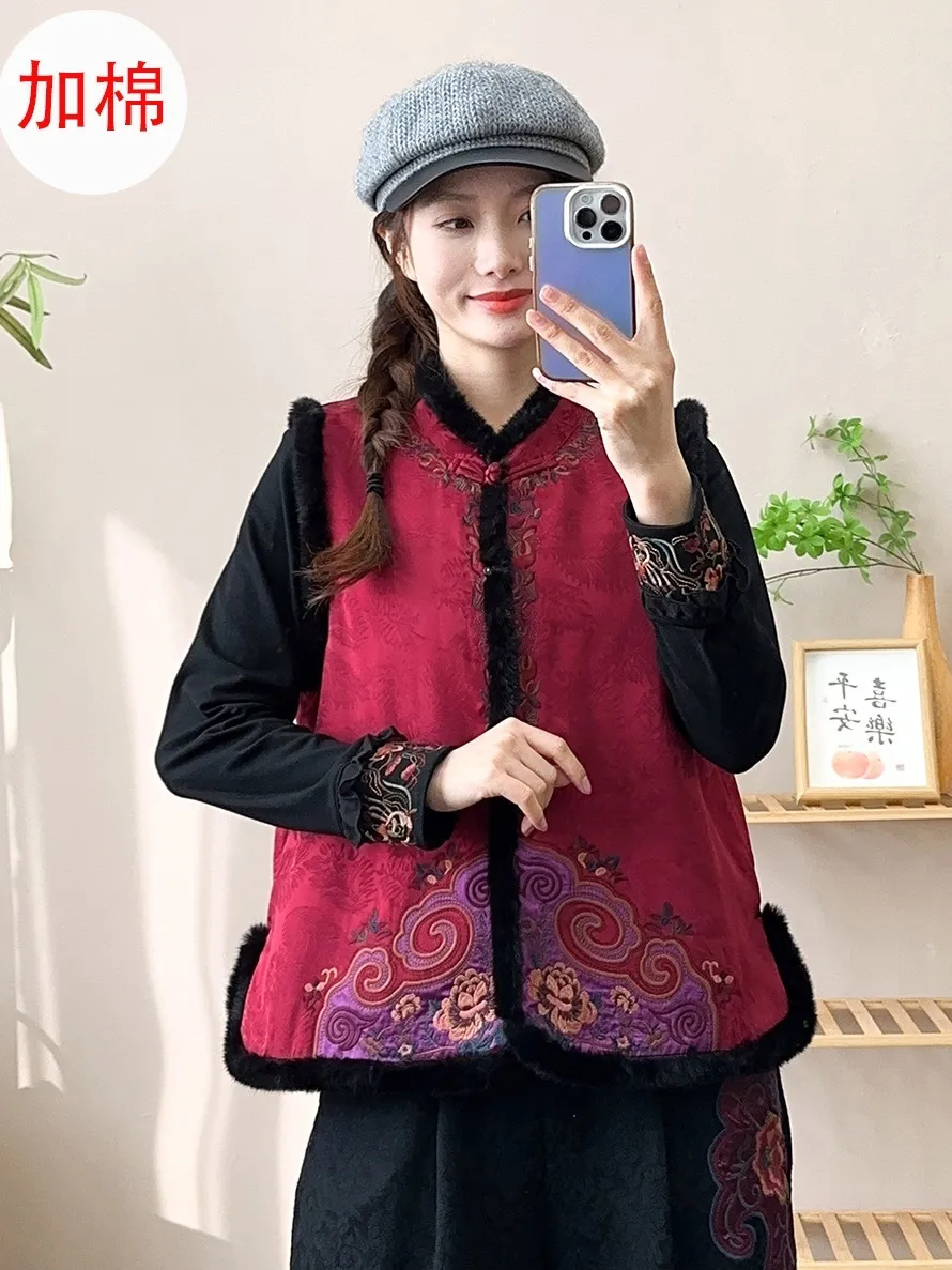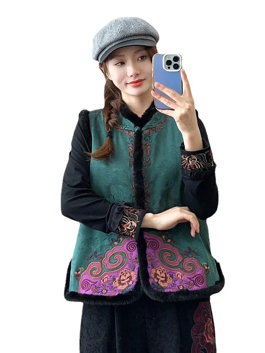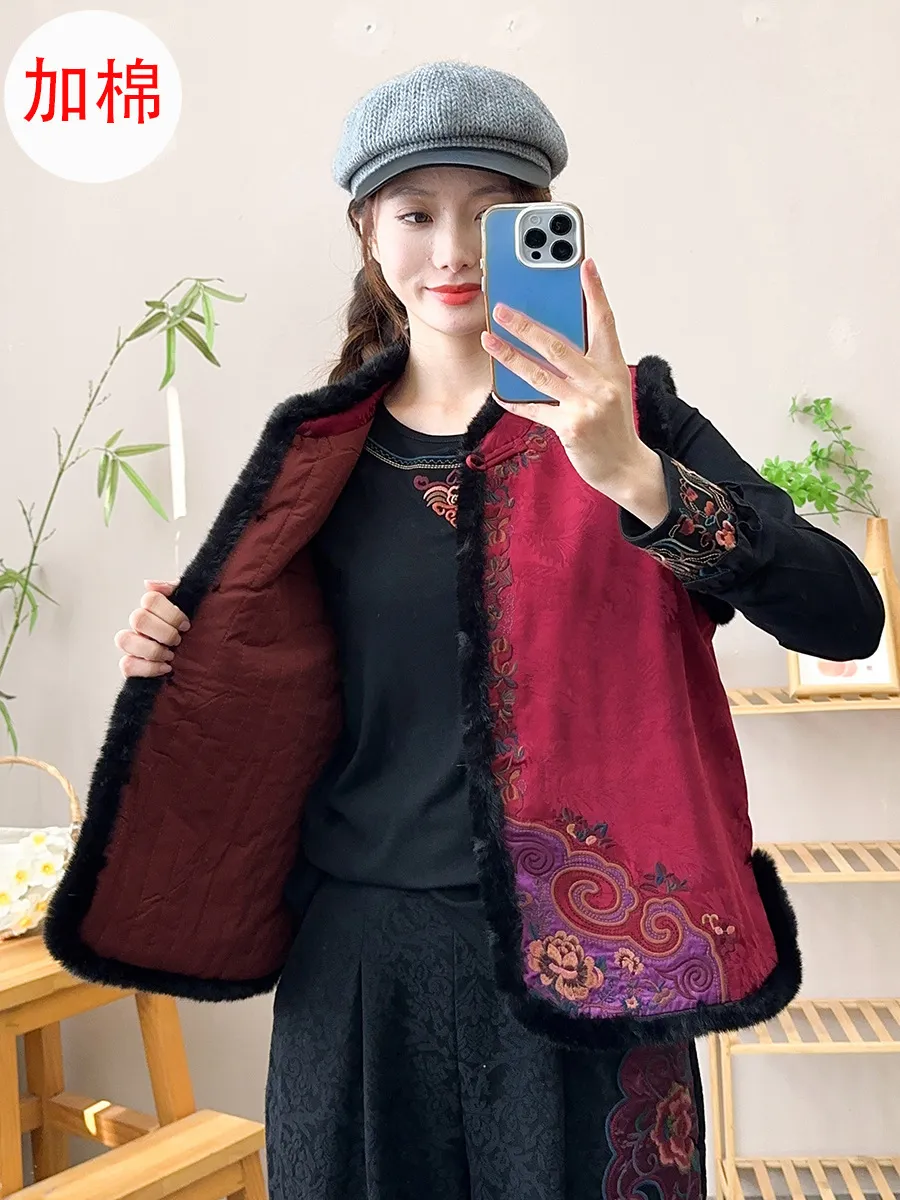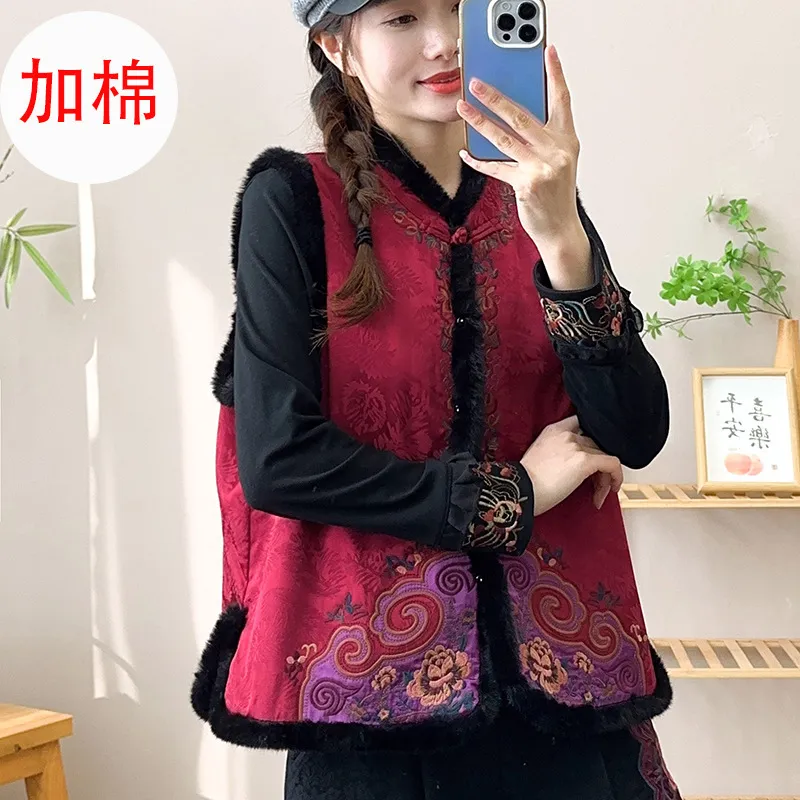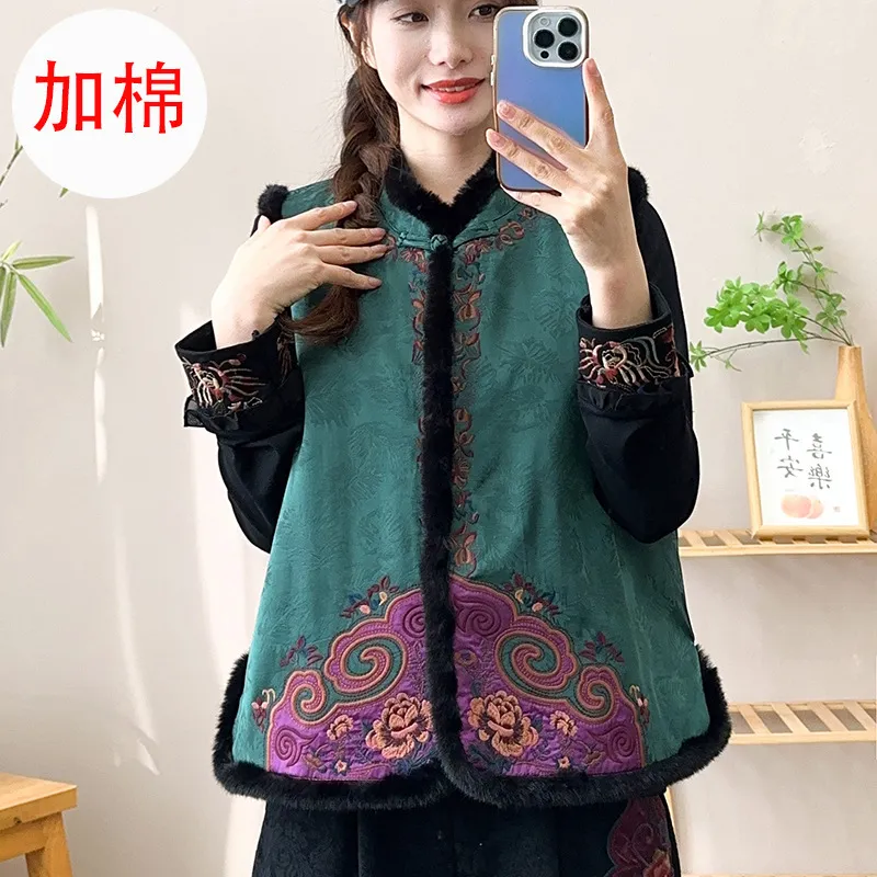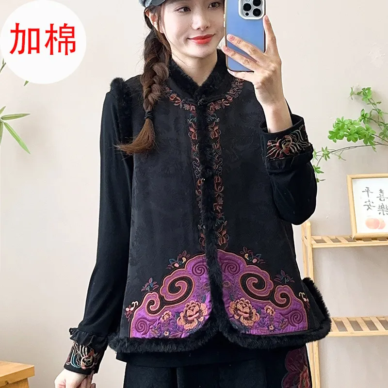 衣都精品- 2023新款民族風提花刺繡拼接加絨外套