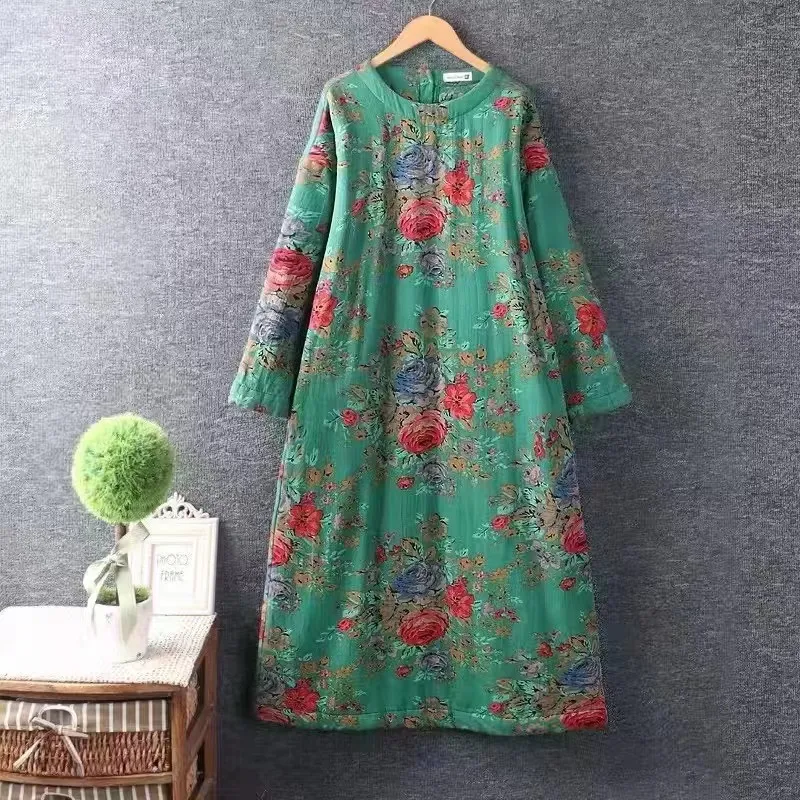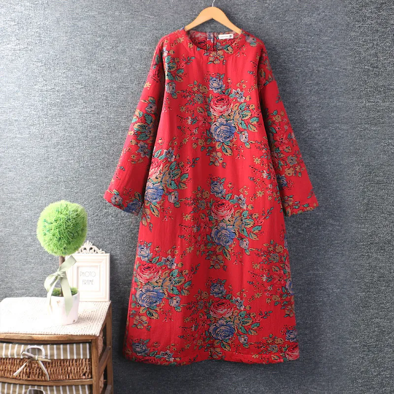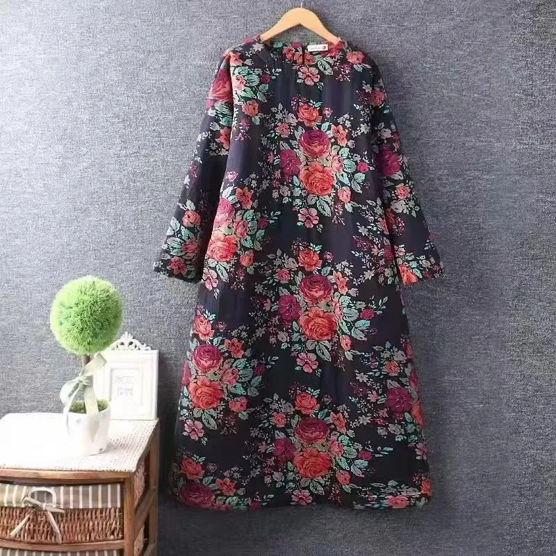 衣都精品- 2023新款復古文藝民族風圓領大花連衣裙