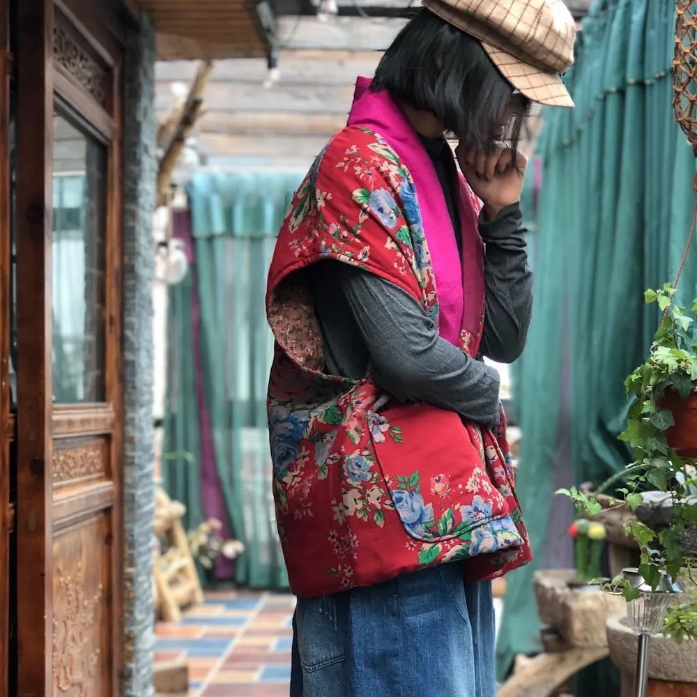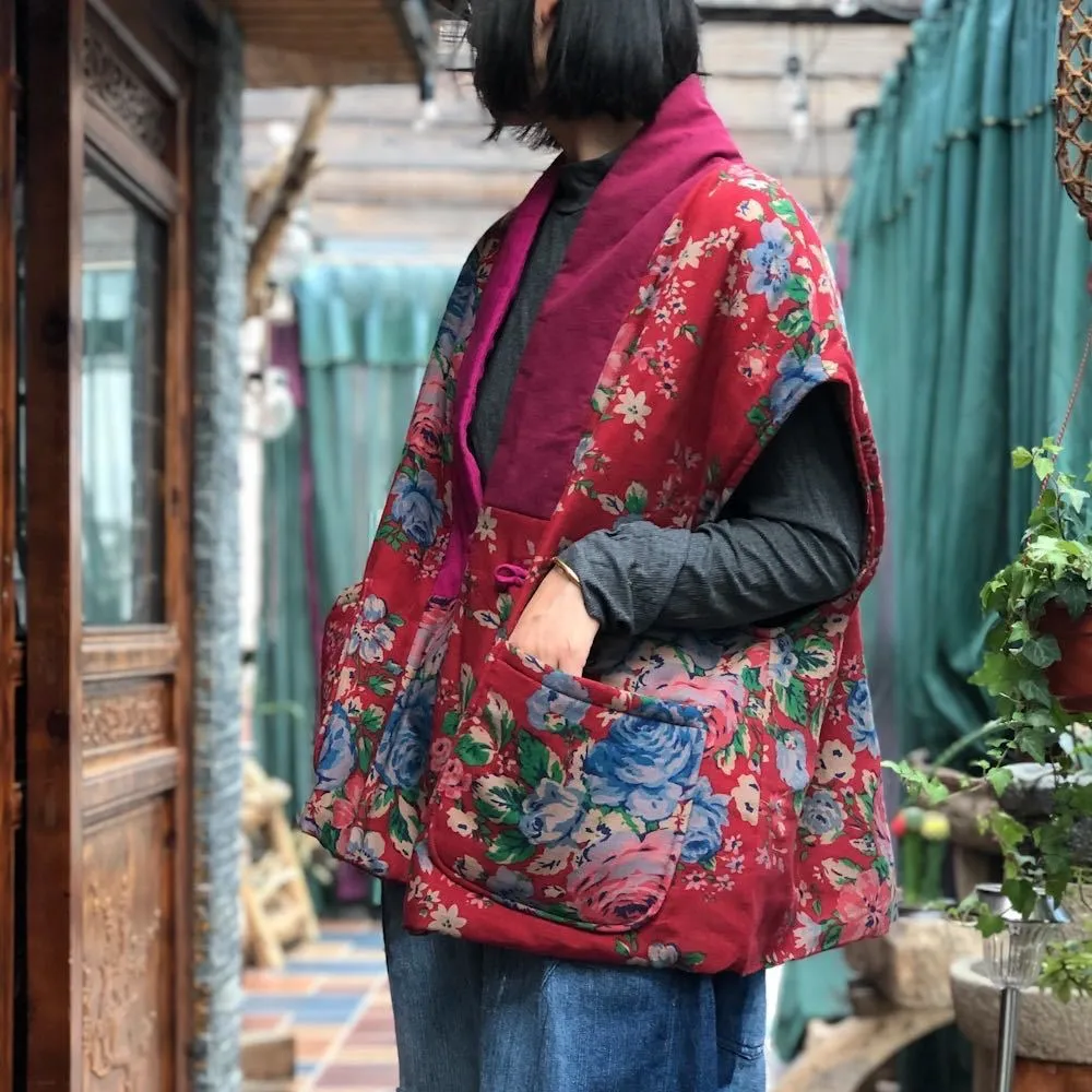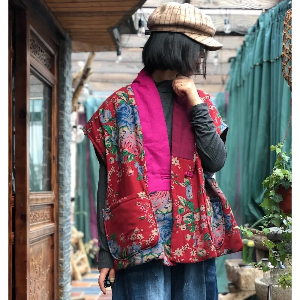 衣都精品- 2023新款民族風撞色寬鬆夾棉坎肩