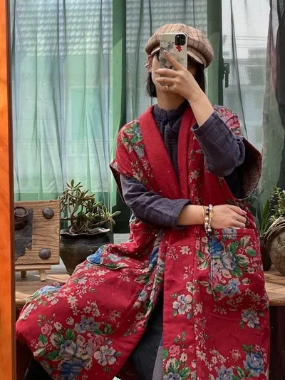 衣都精品- 2023新款民族風撞色寬鬆夾棉長款坎肩