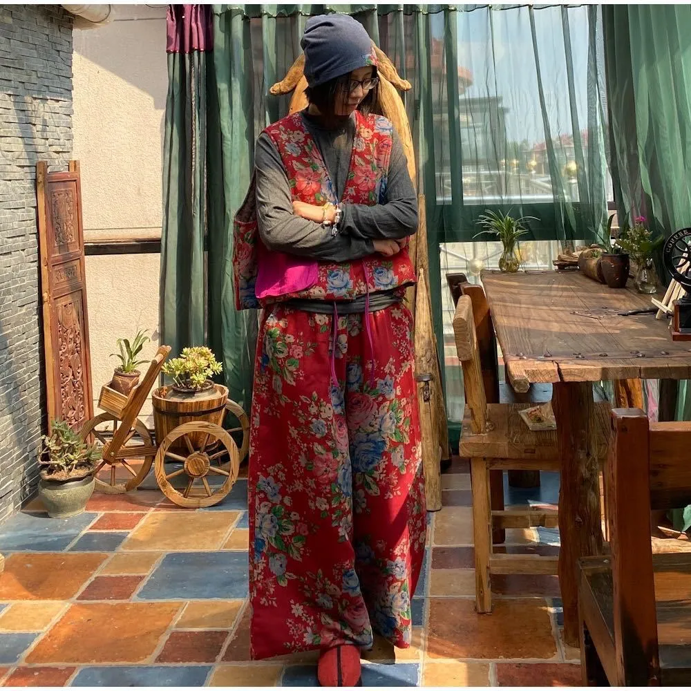 衣都精品- 2023新款民族風撞色寬鬆夾棉長款坎肩