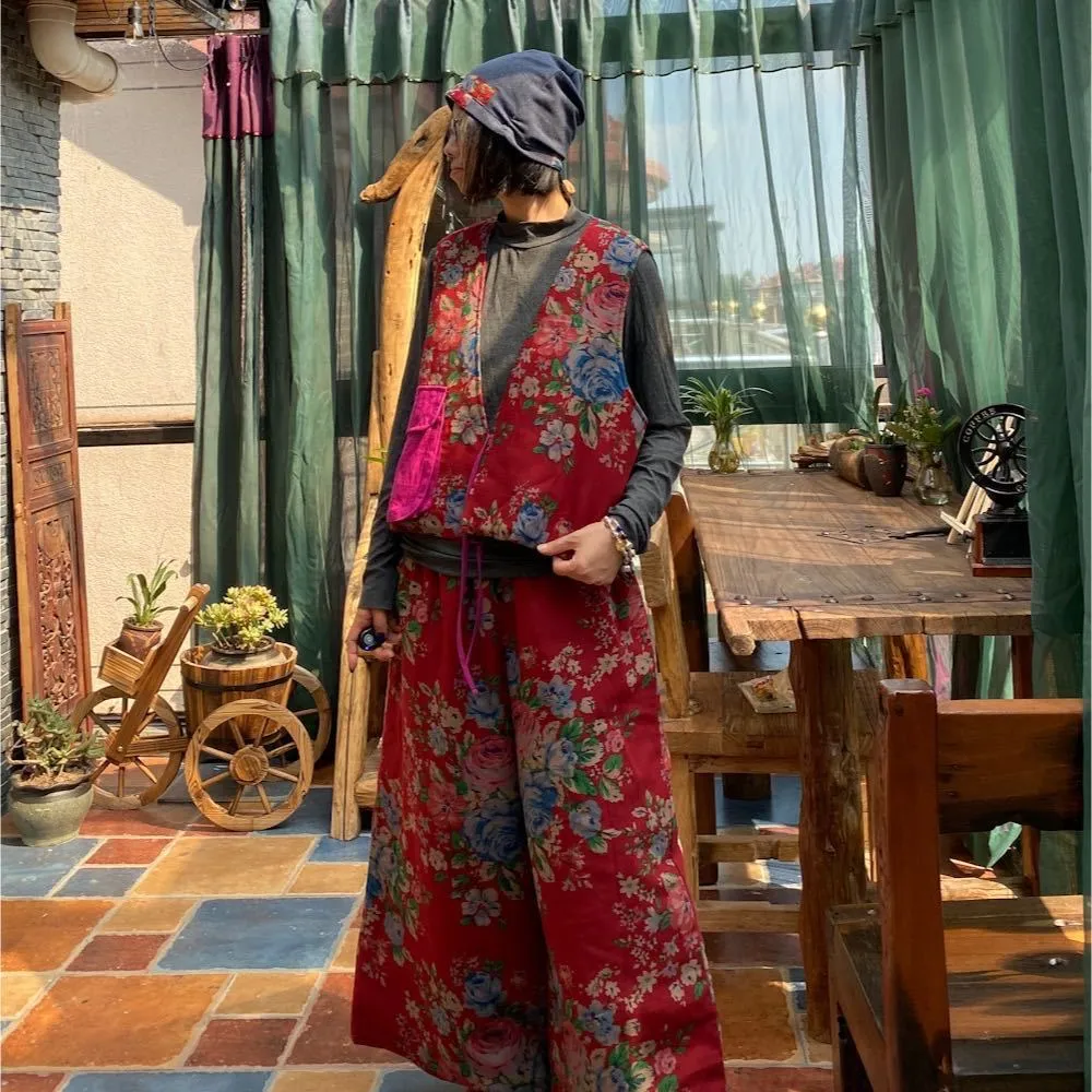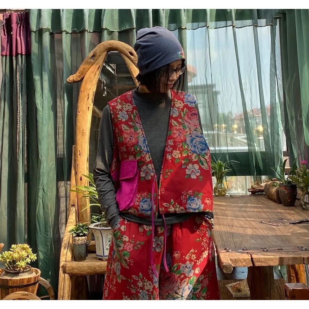 衣都精品- 2023新款民族風撞色寬鬆夾棉坎肩