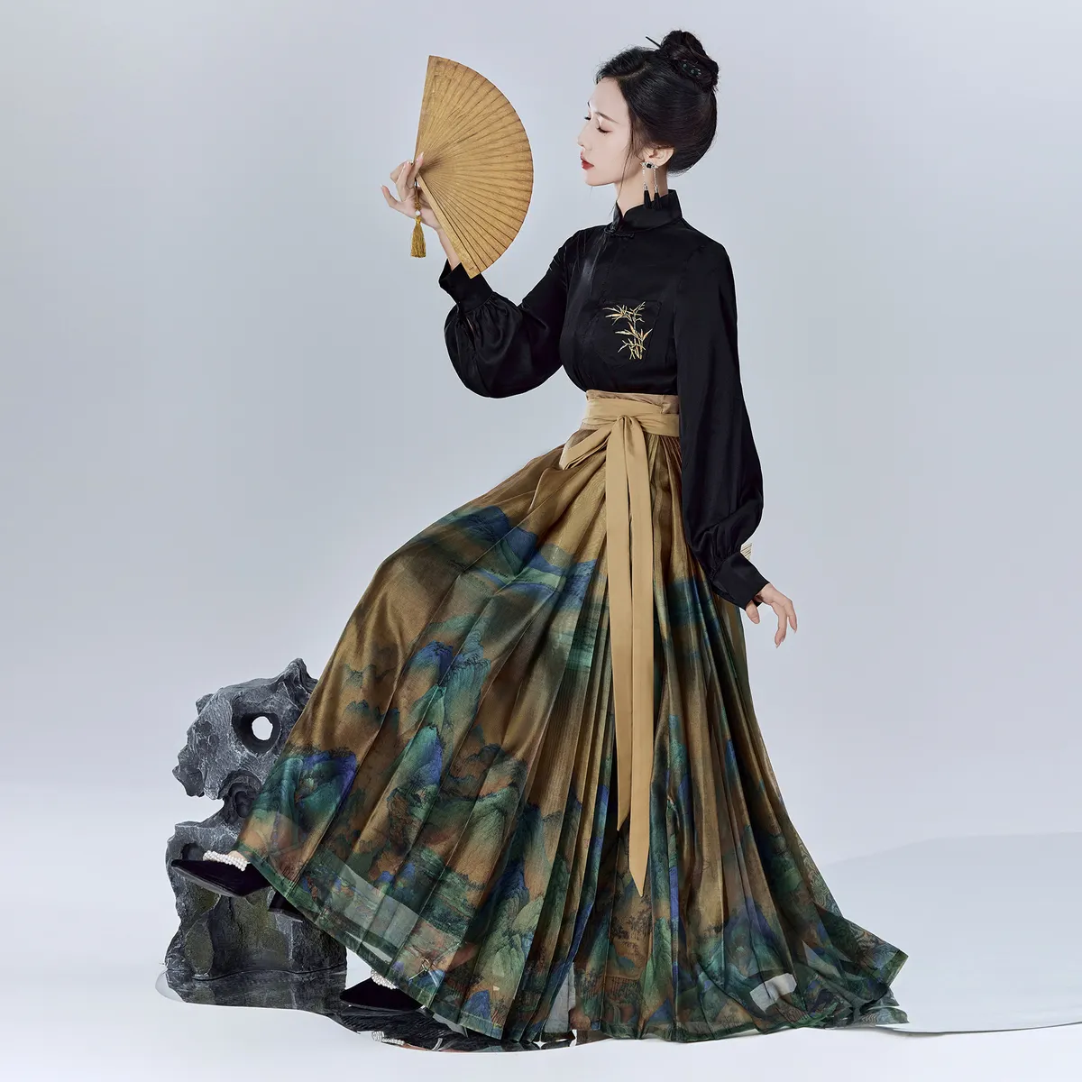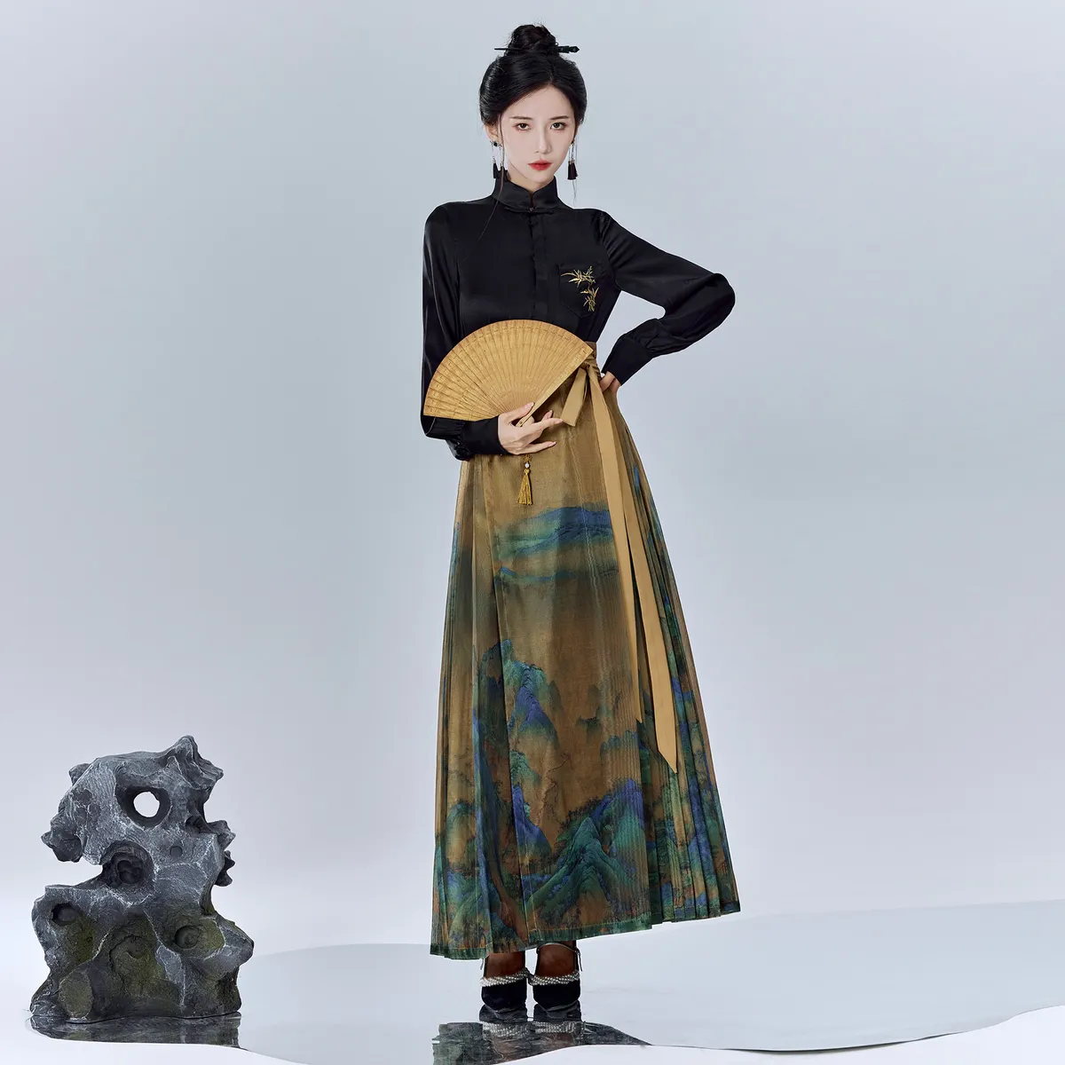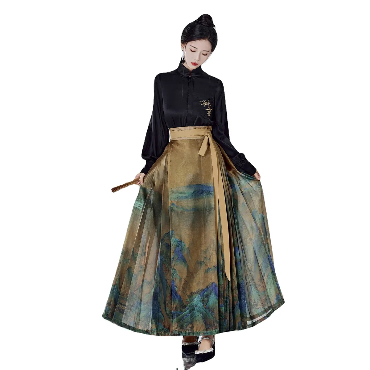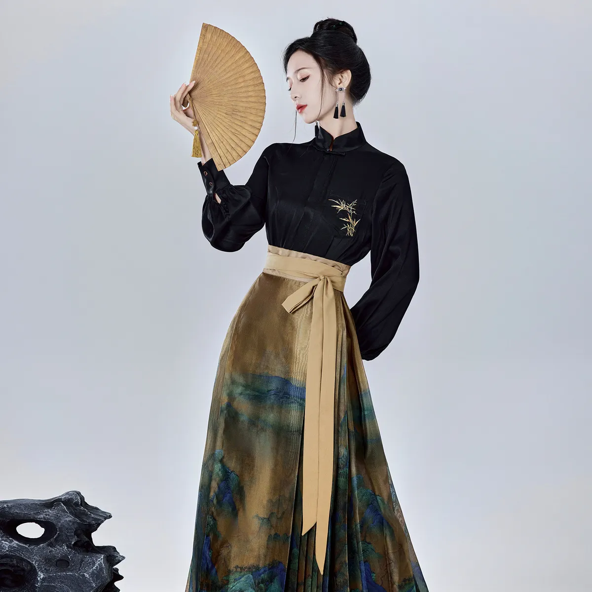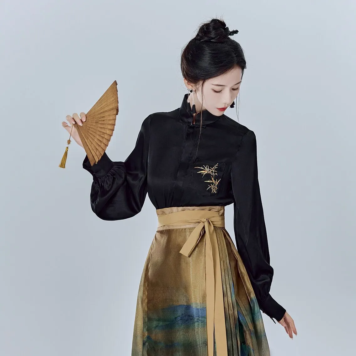 衣都精品- 2023新款復古改良純色刺繡顯瘦長袖上衣