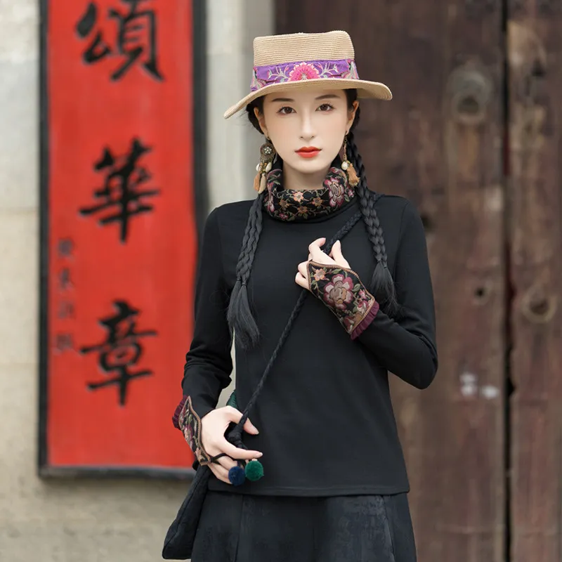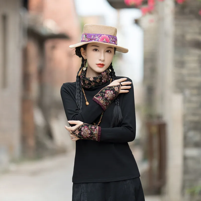 衣都精品- 2023新款民族風重工刺繡手袖高領上衣