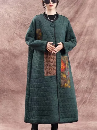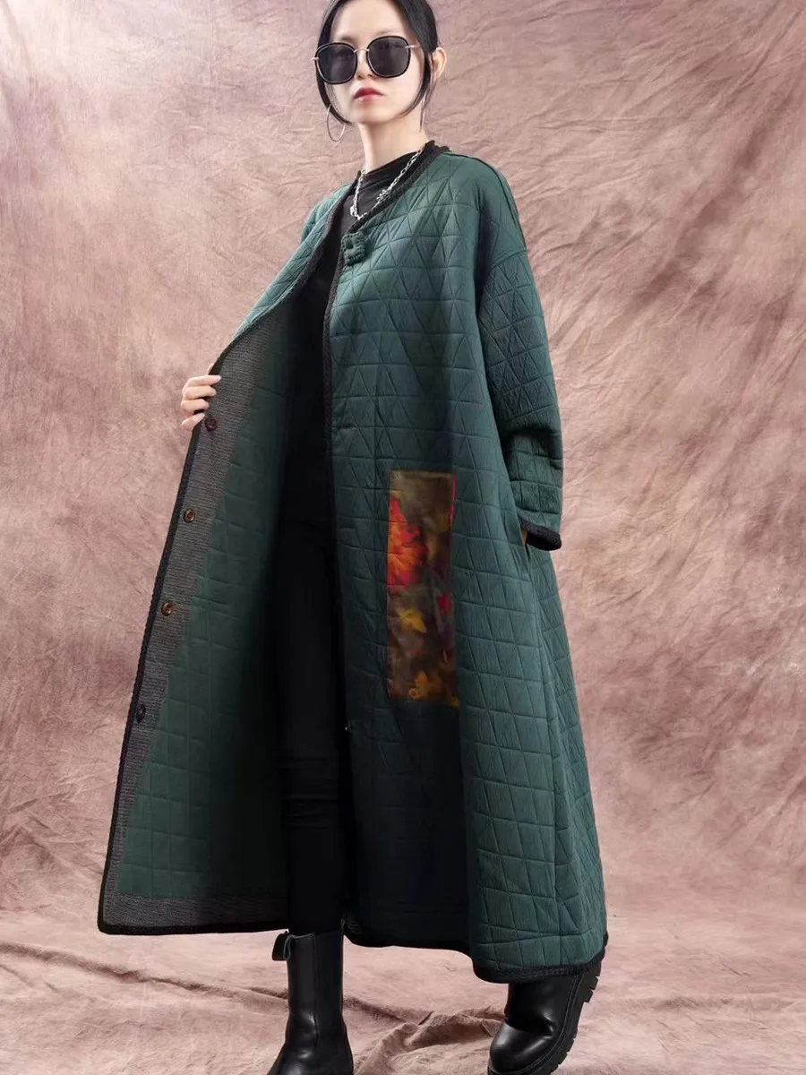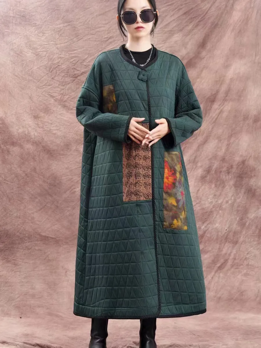 衣都精品- 2023新款民族風亞麻混紡高領長款外套