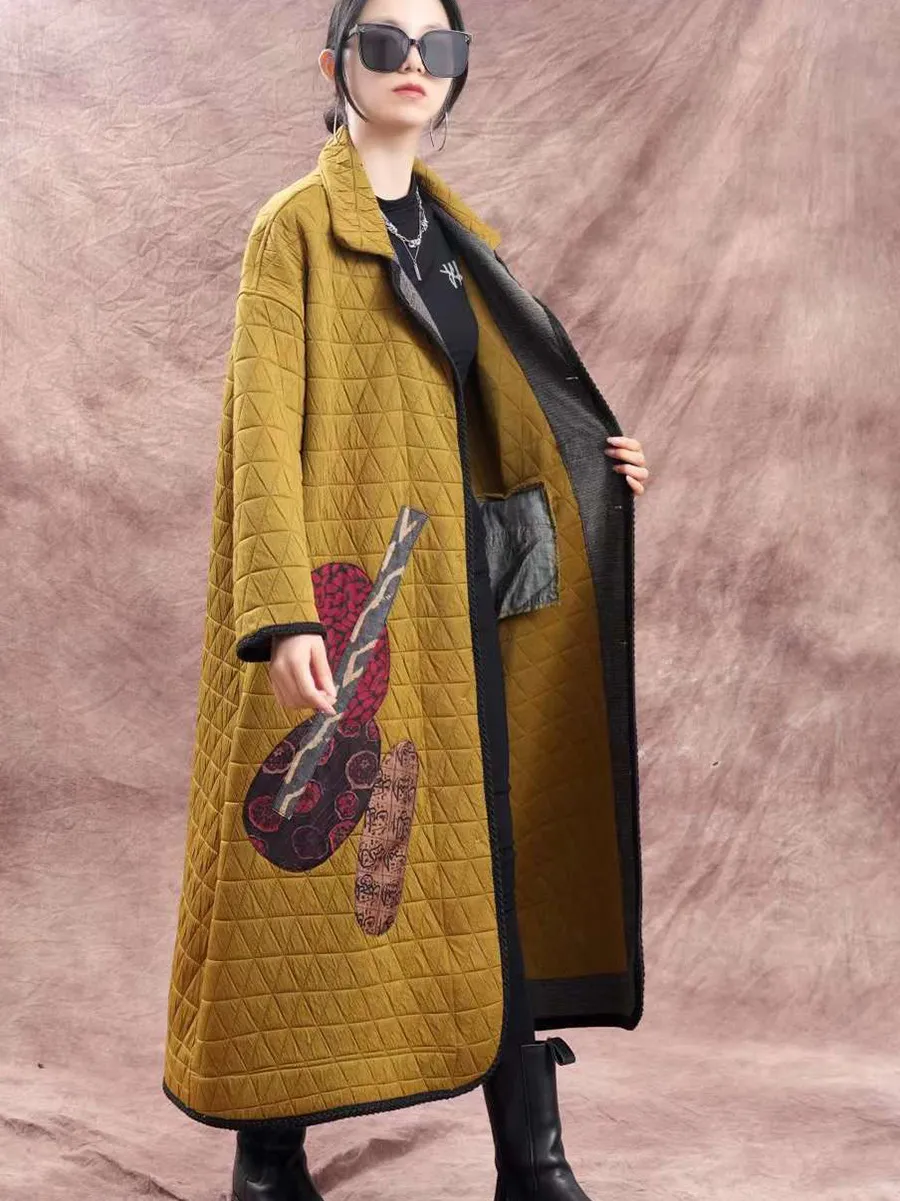 衣都精品- 2023新款大碼寬鬆貼布翻領泡泡棉外套
