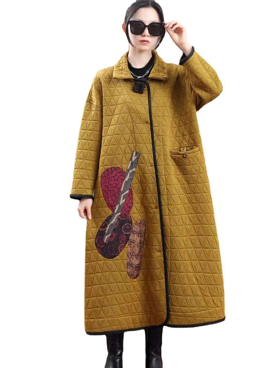衣都精品- 2023新款民族風亞麻混紡高領長款外套