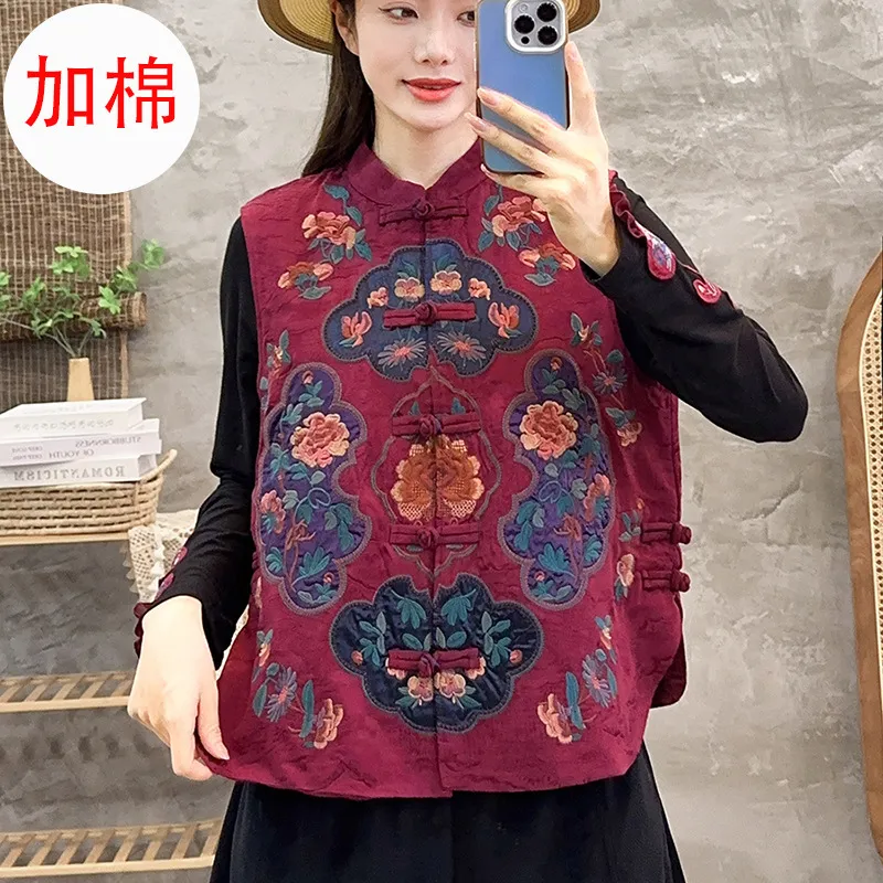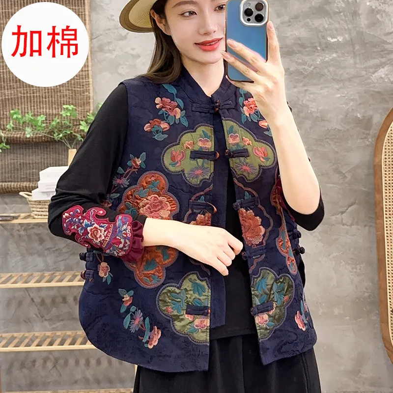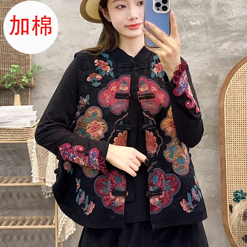 衣都精品- 2023新款民族風盤扣連帽加厚刺繡外套
