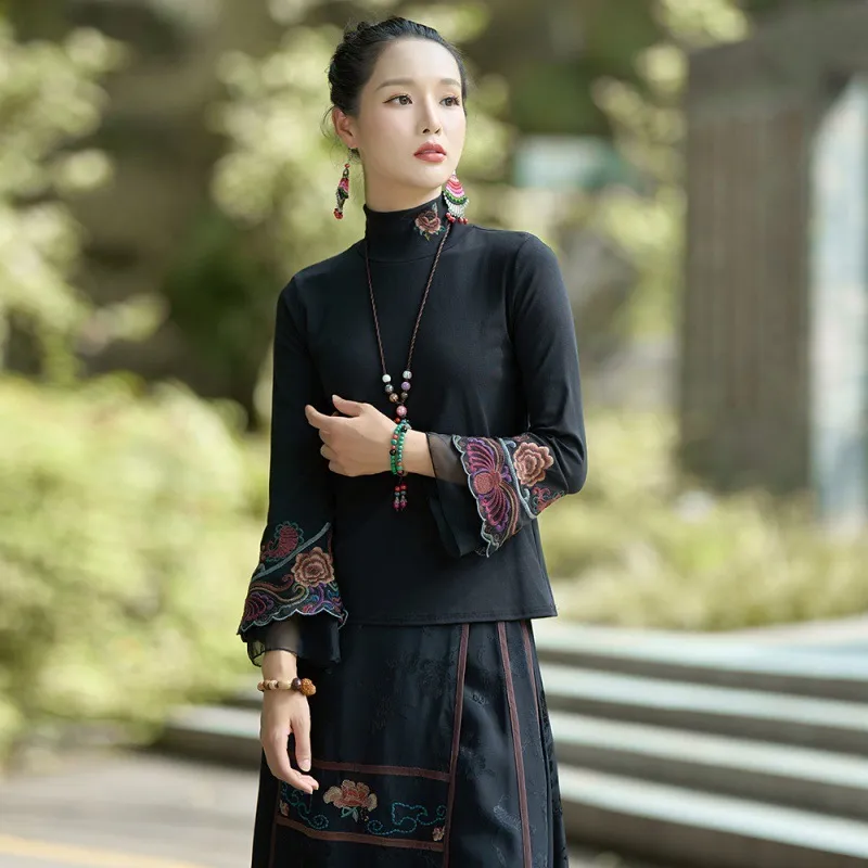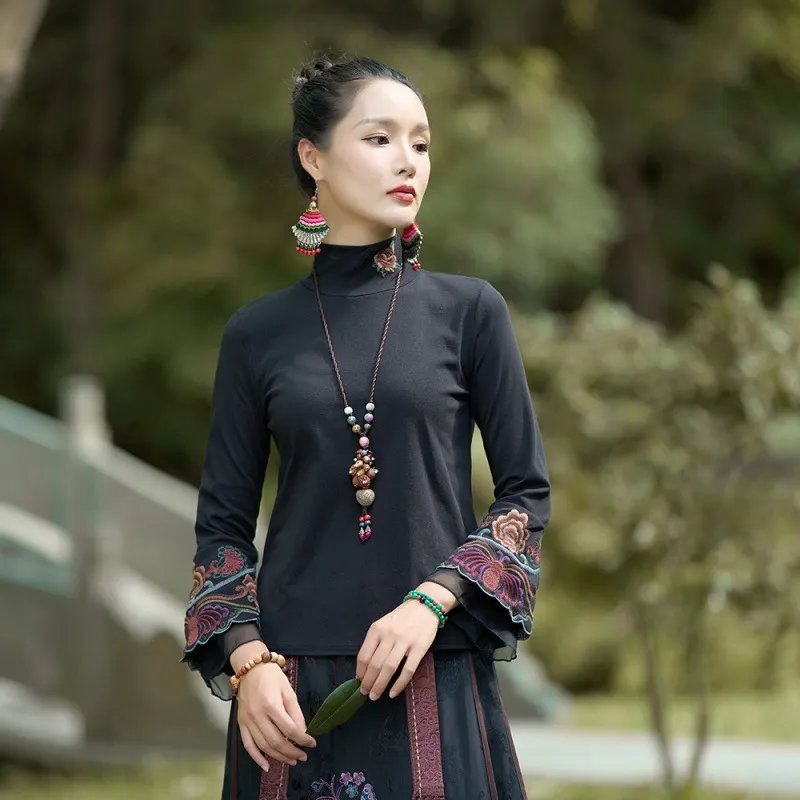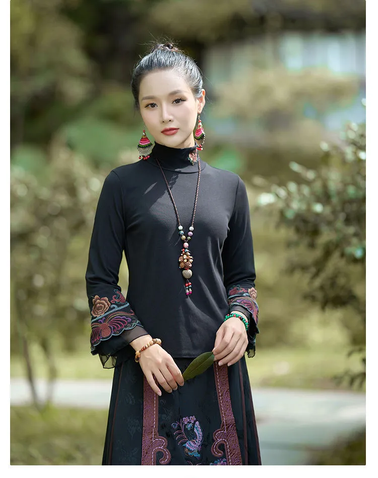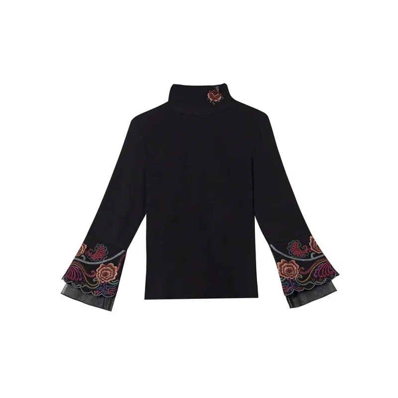 衣都精品- 2023新款中國風刺繡雙面德絨內搭高領上衣