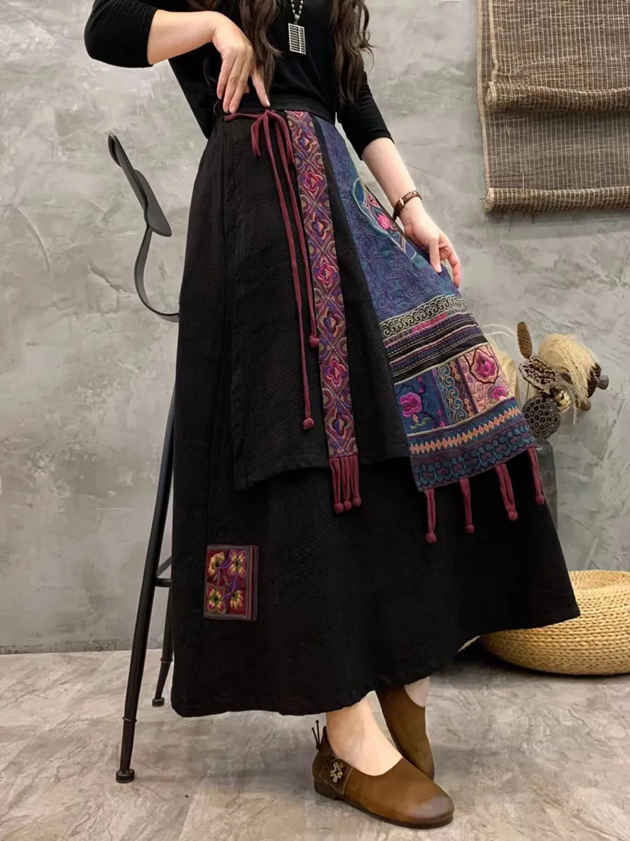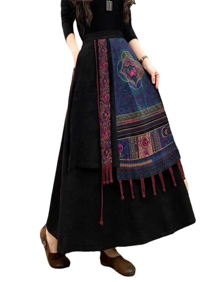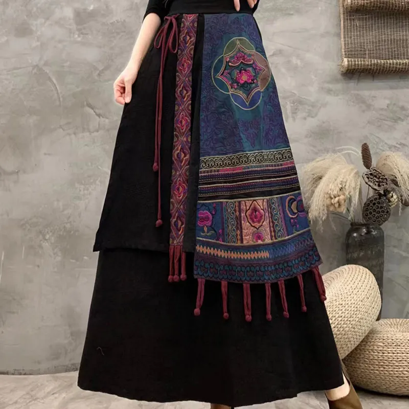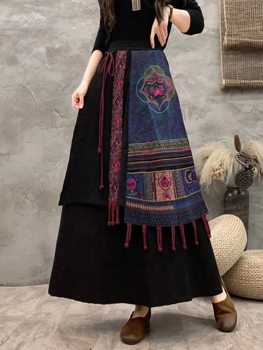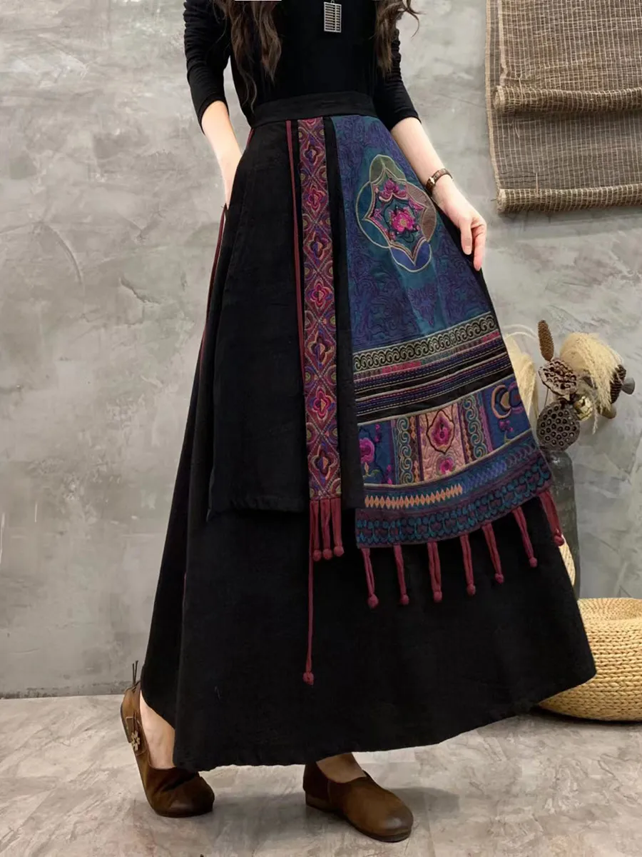 衣都精品- 2023新款文藝包邊撞色刺繡馬面半身裙