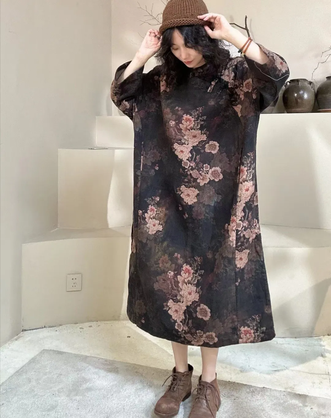 衣都精品- 2023新款中國風復古盤扣寬鬆氣質連衣裙