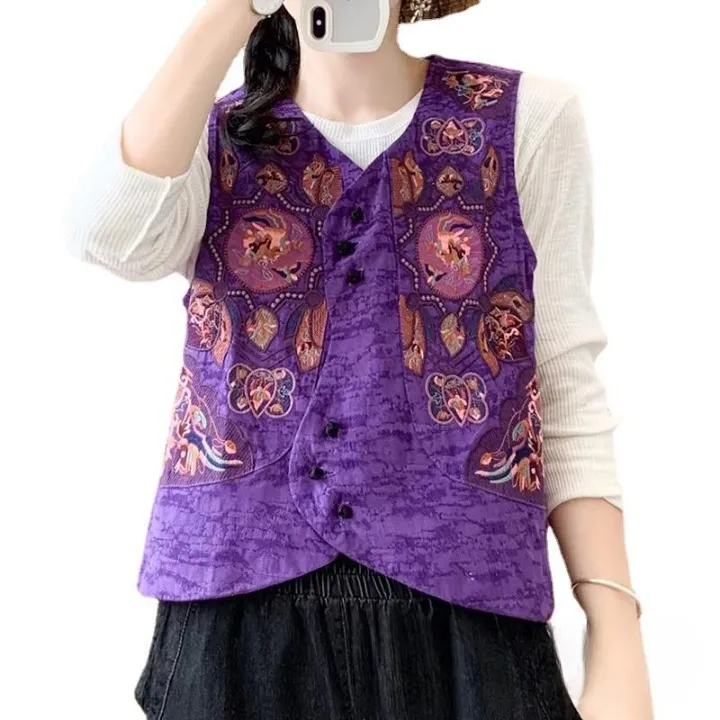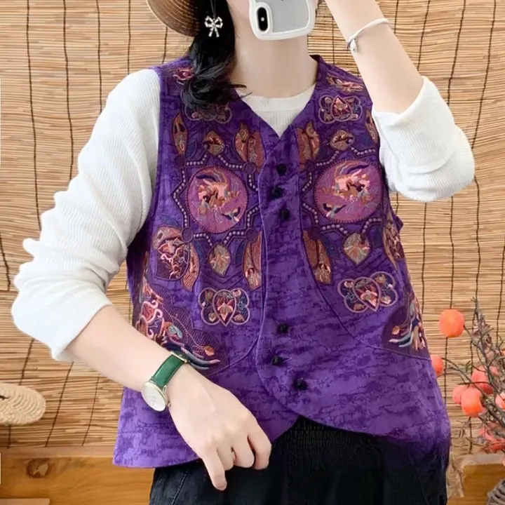 衣都精品- 2023新款民族風刺繡圓領盤扣馬甲外套