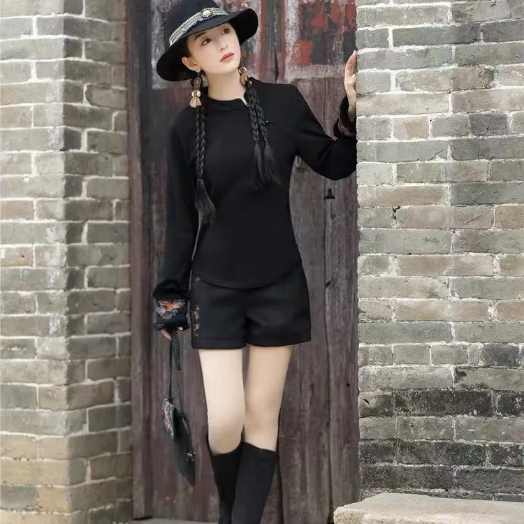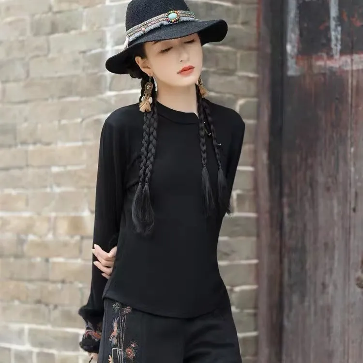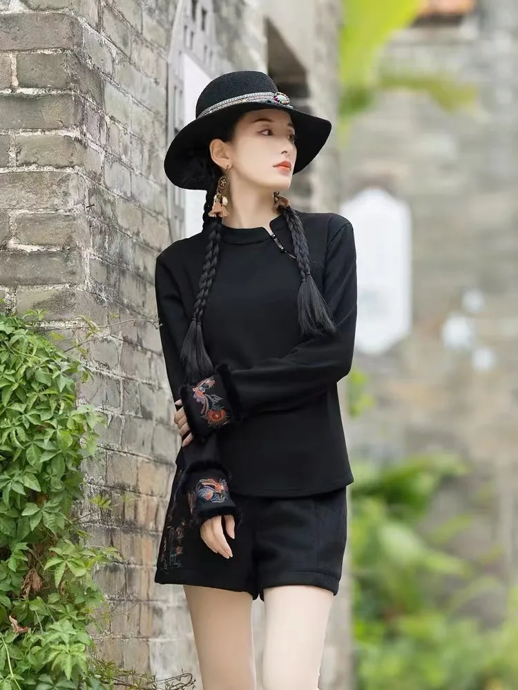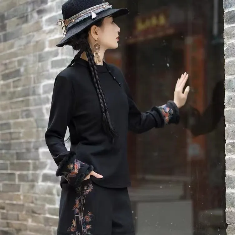 衣都精品- 2023新款民族風加厚保暖立領刺繡兔毛袖上衣