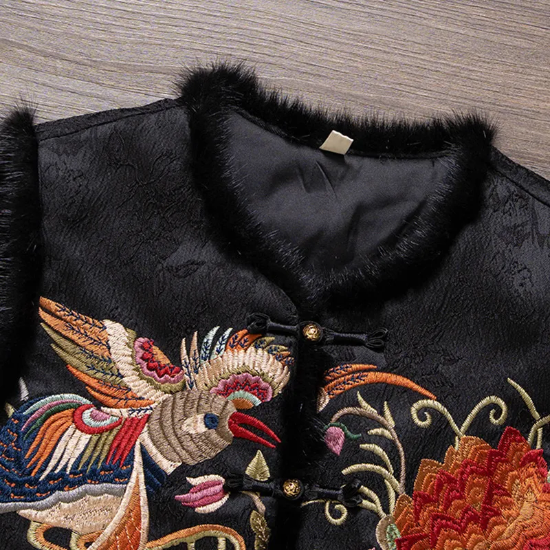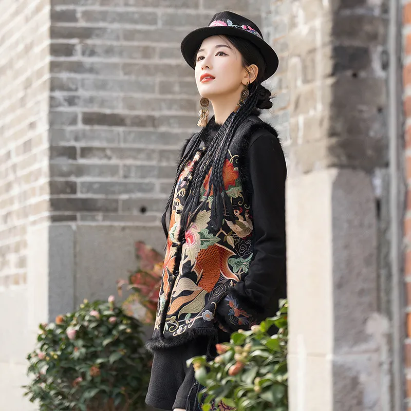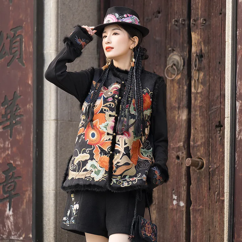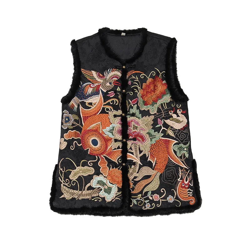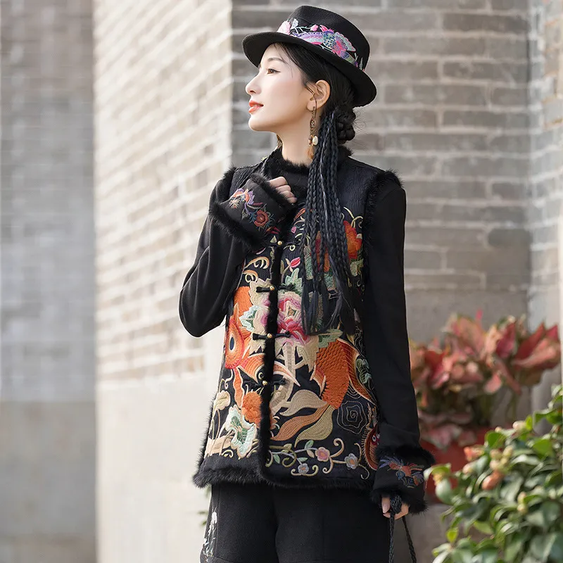 衣都精品- 2023新款民族風刺繡水貂毛提花馬甲外套