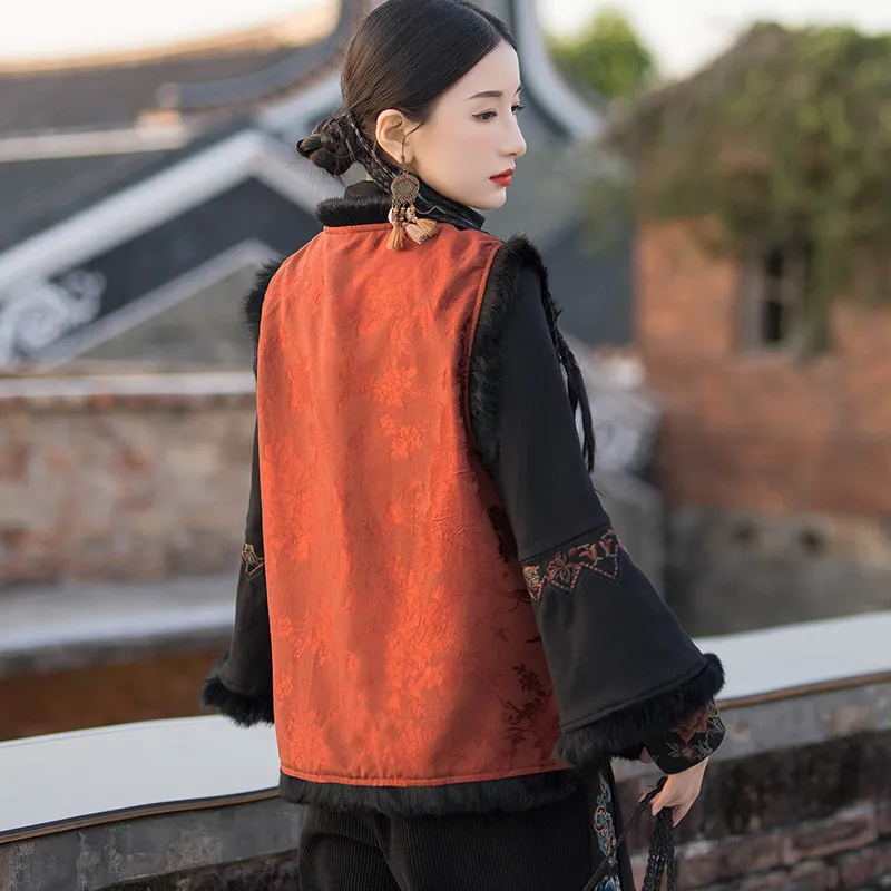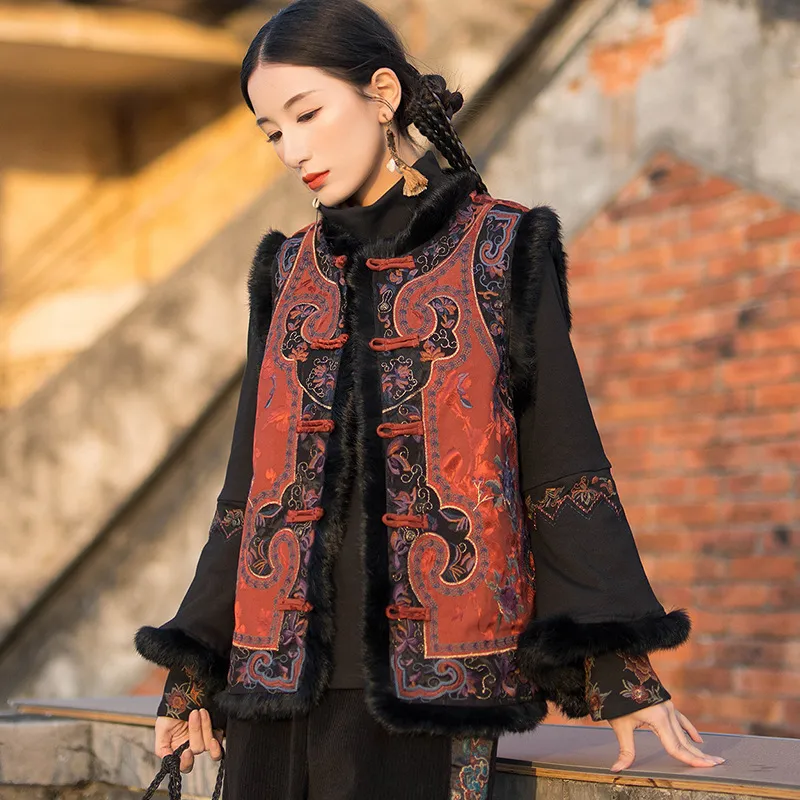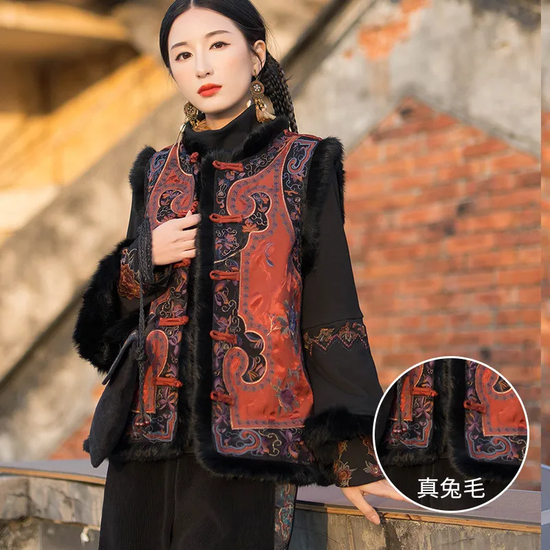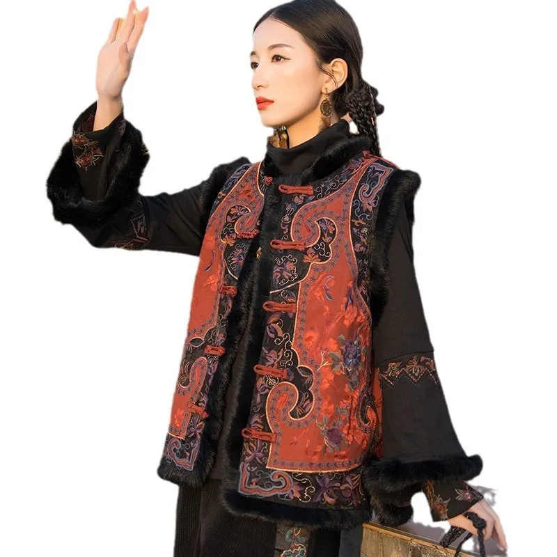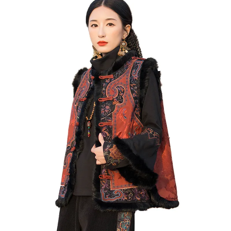 衣都精品- 2023新款民族風刺繡水貂毛提花馬甲外套