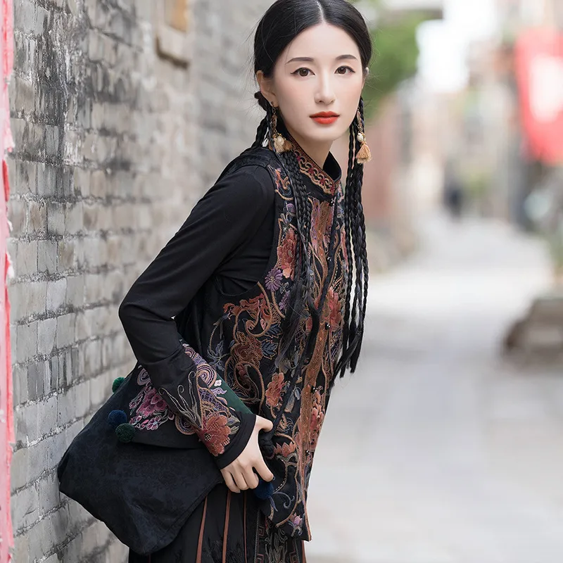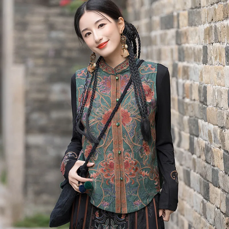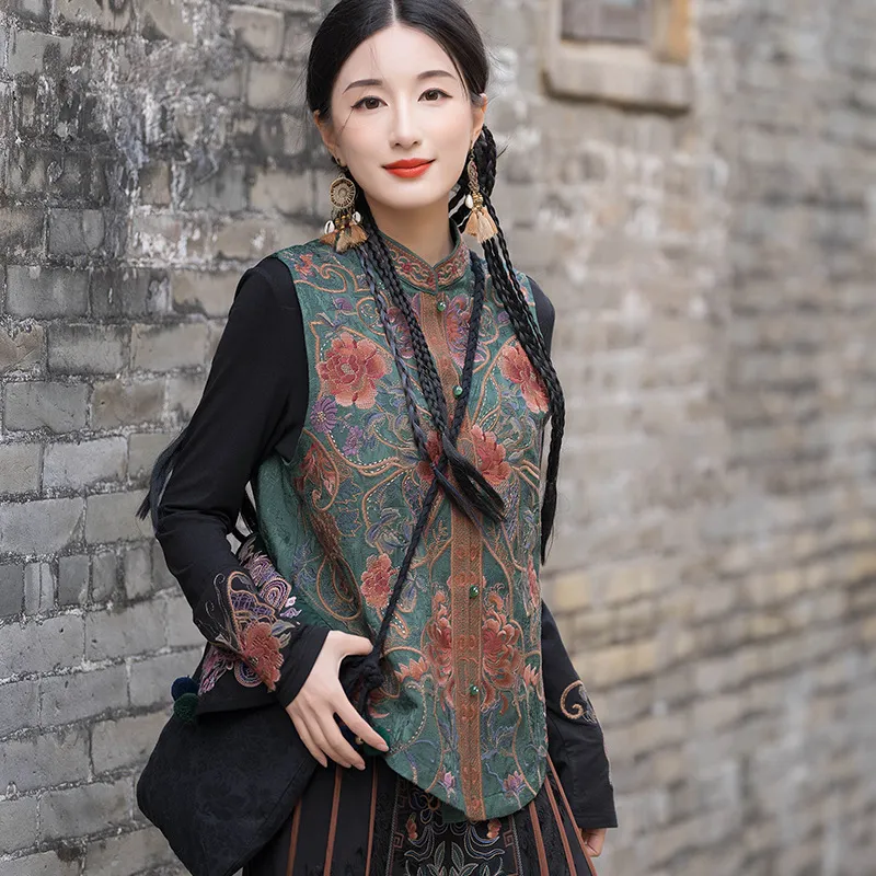 衣都精品- 2023新款民族風緞面重工刺繡馬甲外套