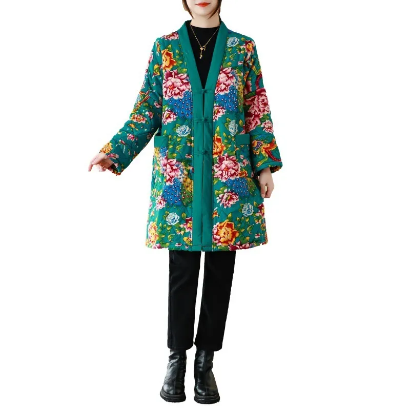 衣都精品- 2023新款民族風中式立領盤扣印花流蘇外套