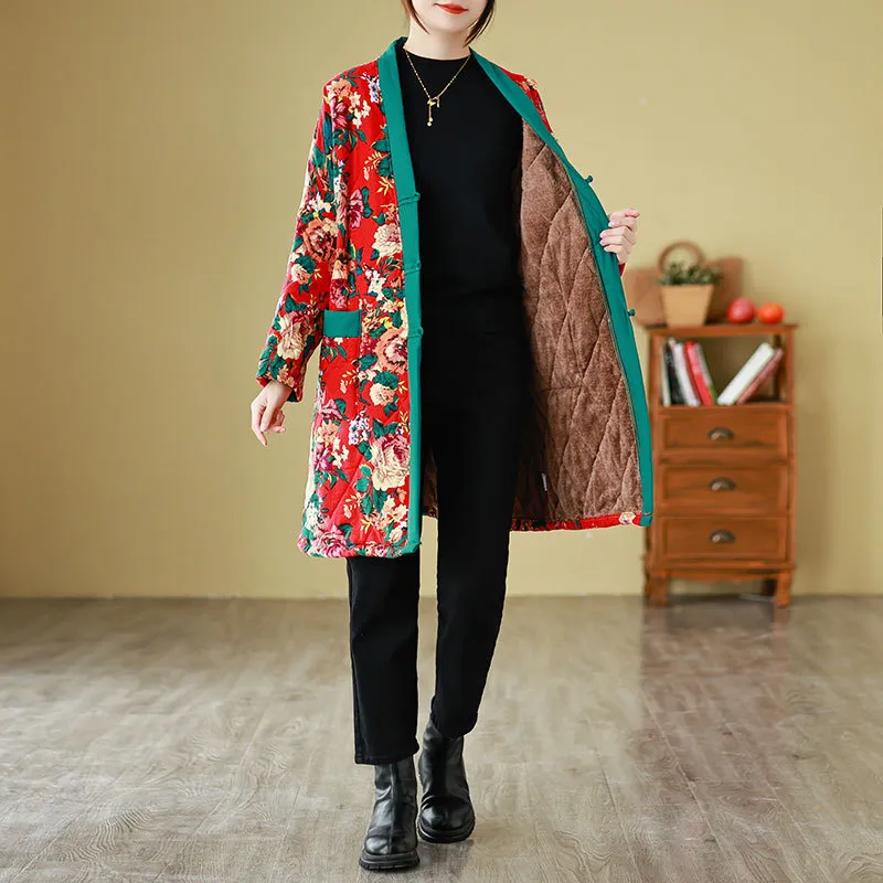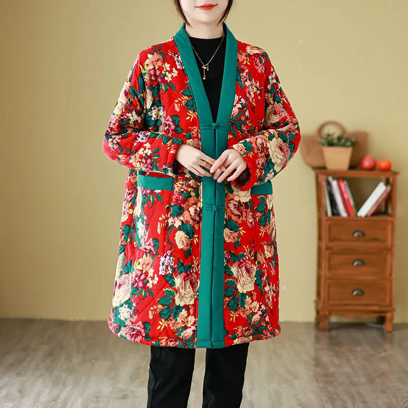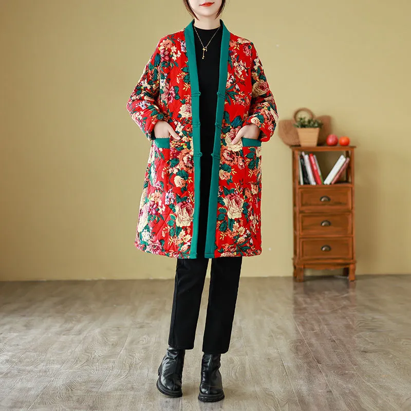 衣都精品- 2023新款民族風盤口棉麻老花開衫外套