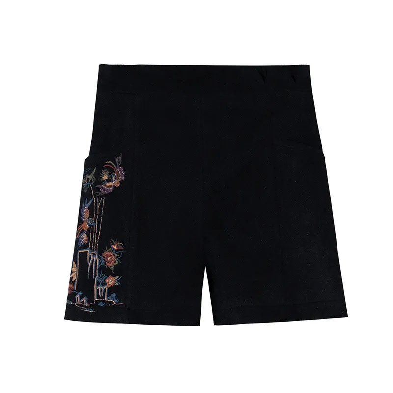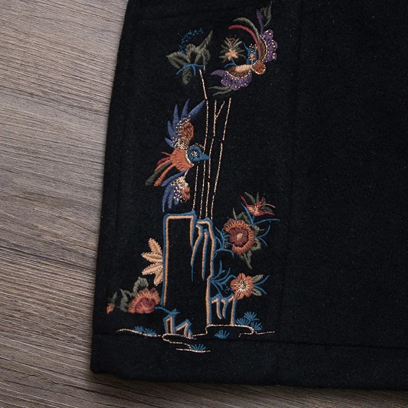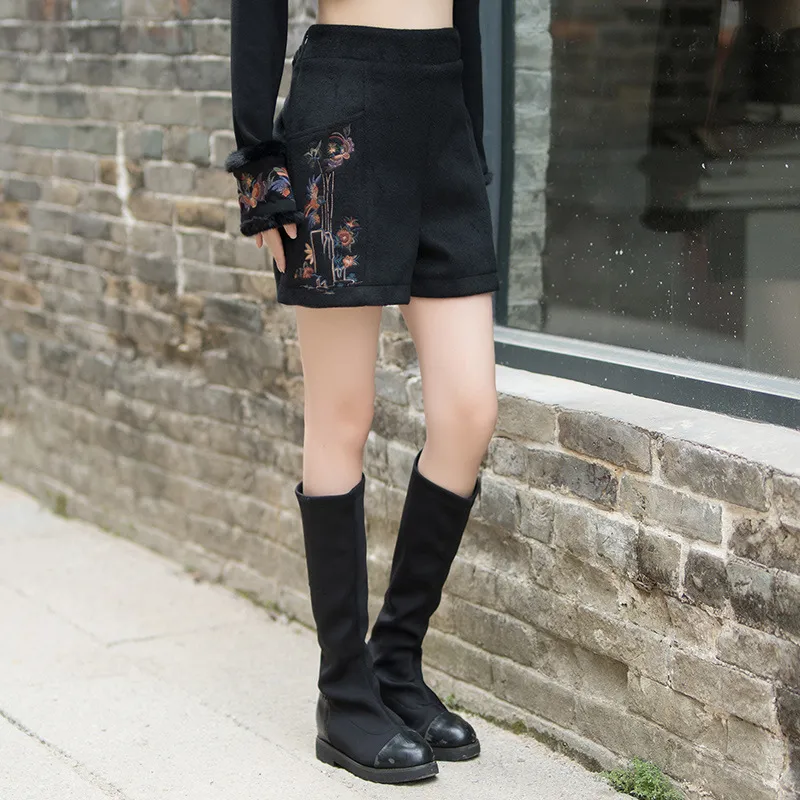 衣都精品- 2023新款民族風繡花鬆緊腰毛呢短褲