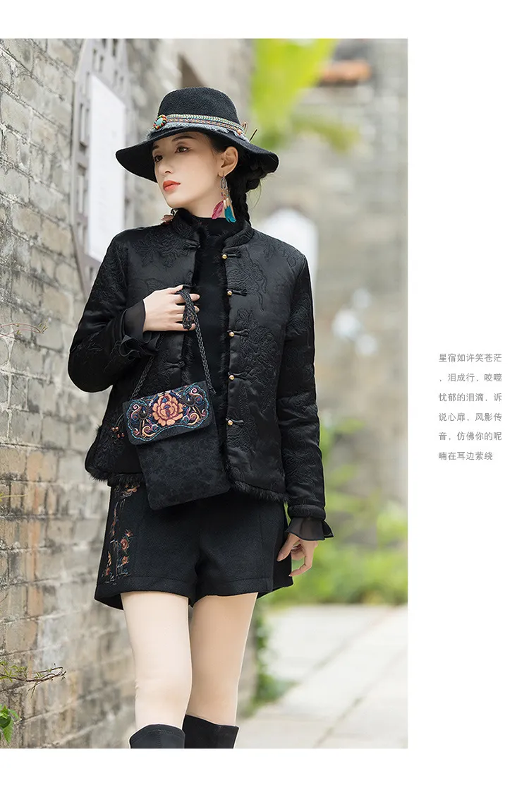 衣都精品- 2023新款民族風緞面繡花立領夾棉外套