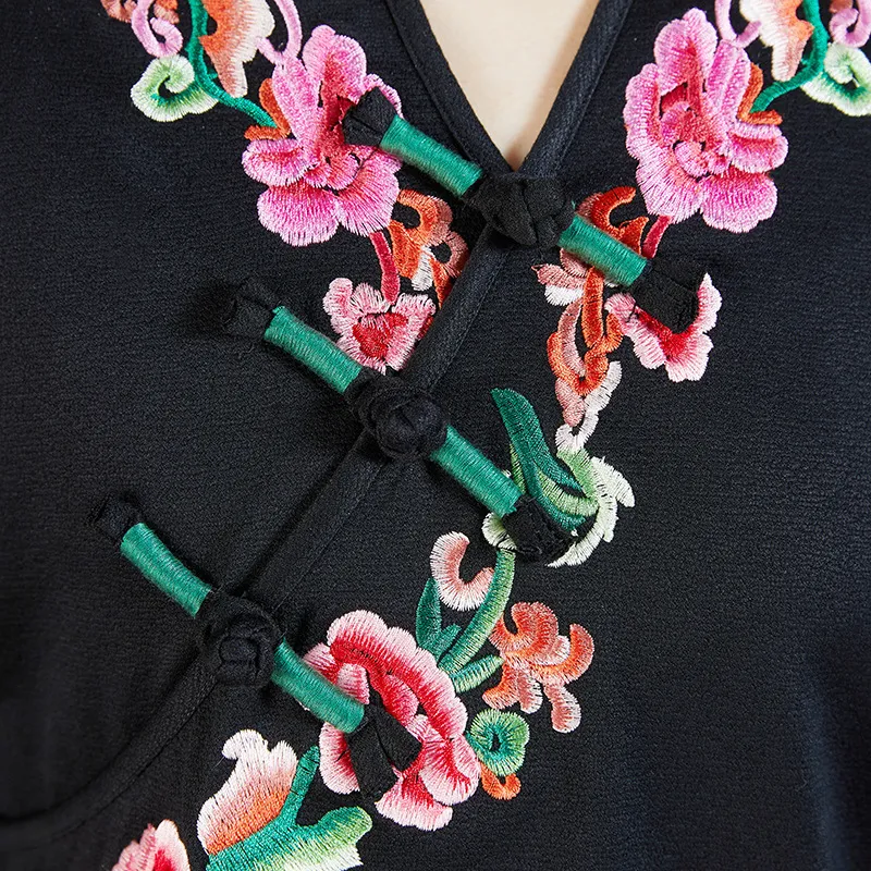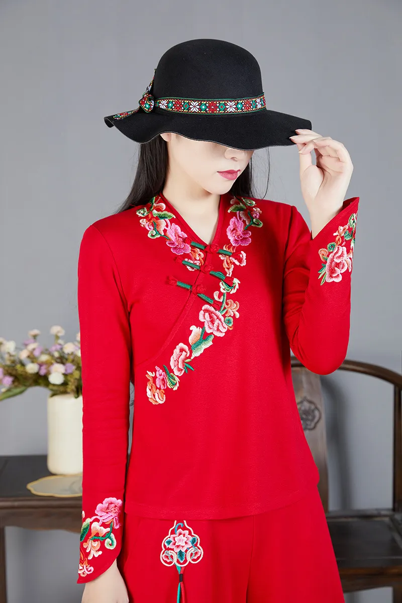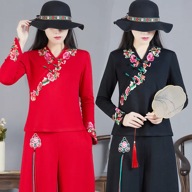 衣都精品- 2023新款民族風大碼長袖繡花斜襟短上衣