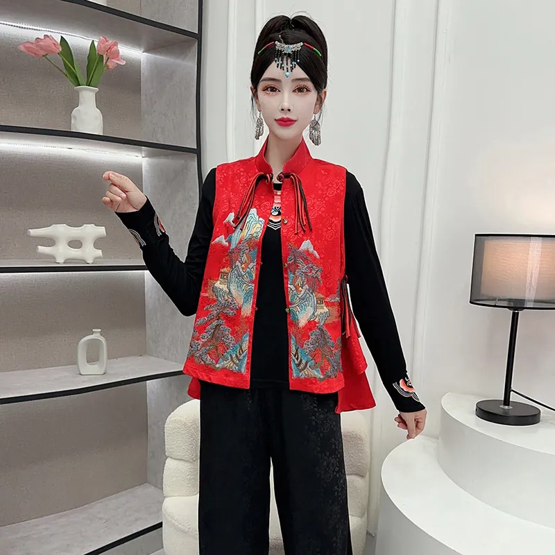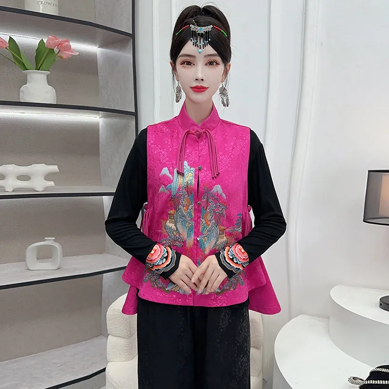 衣都精品- 2023新款中國風立領大碼輕薄透氣馬甲外套
