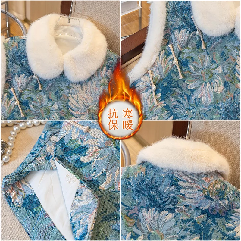 衣都精品- 2023新款復古中國風改良唐裝旗袍提花夾棉外套