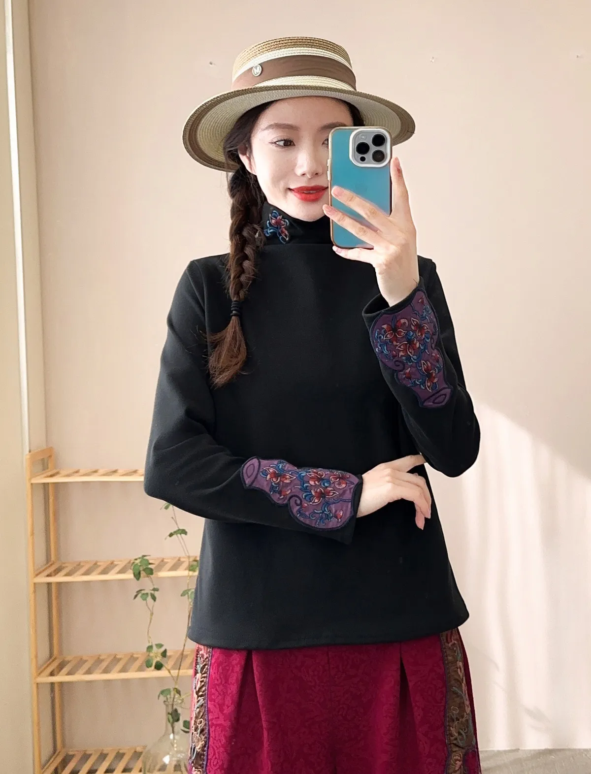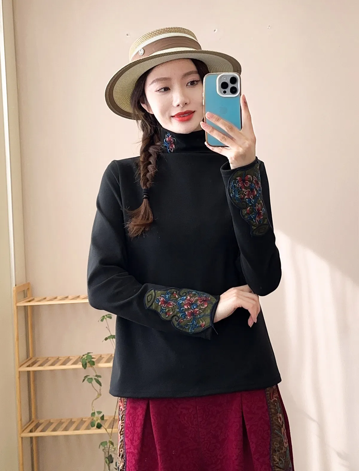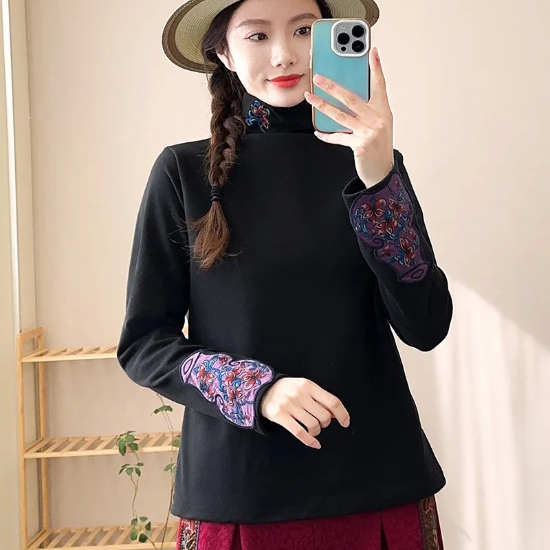 衣都精品- 2023新款中國風德絨刺繡內搭高領氣質上衣