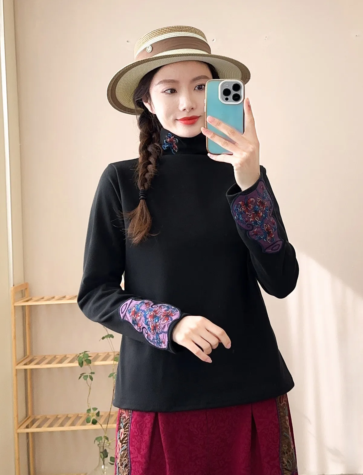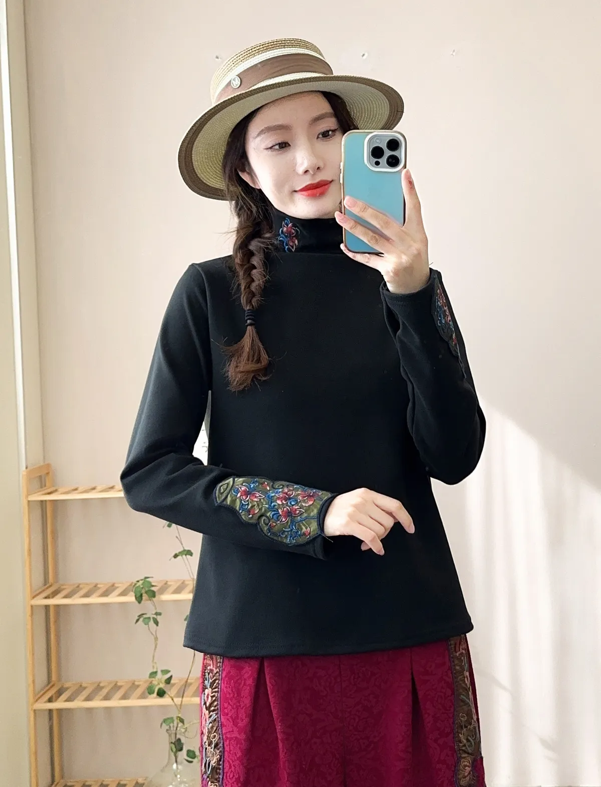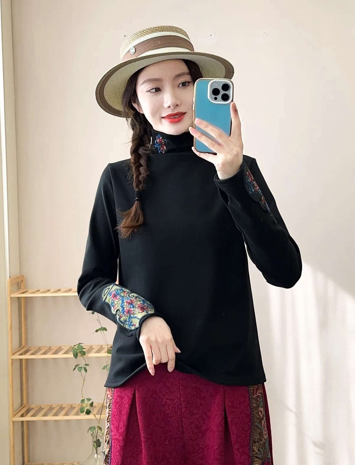 衣都精品- 2023新款中國風德絨刺繡內搭高領氣質上衣