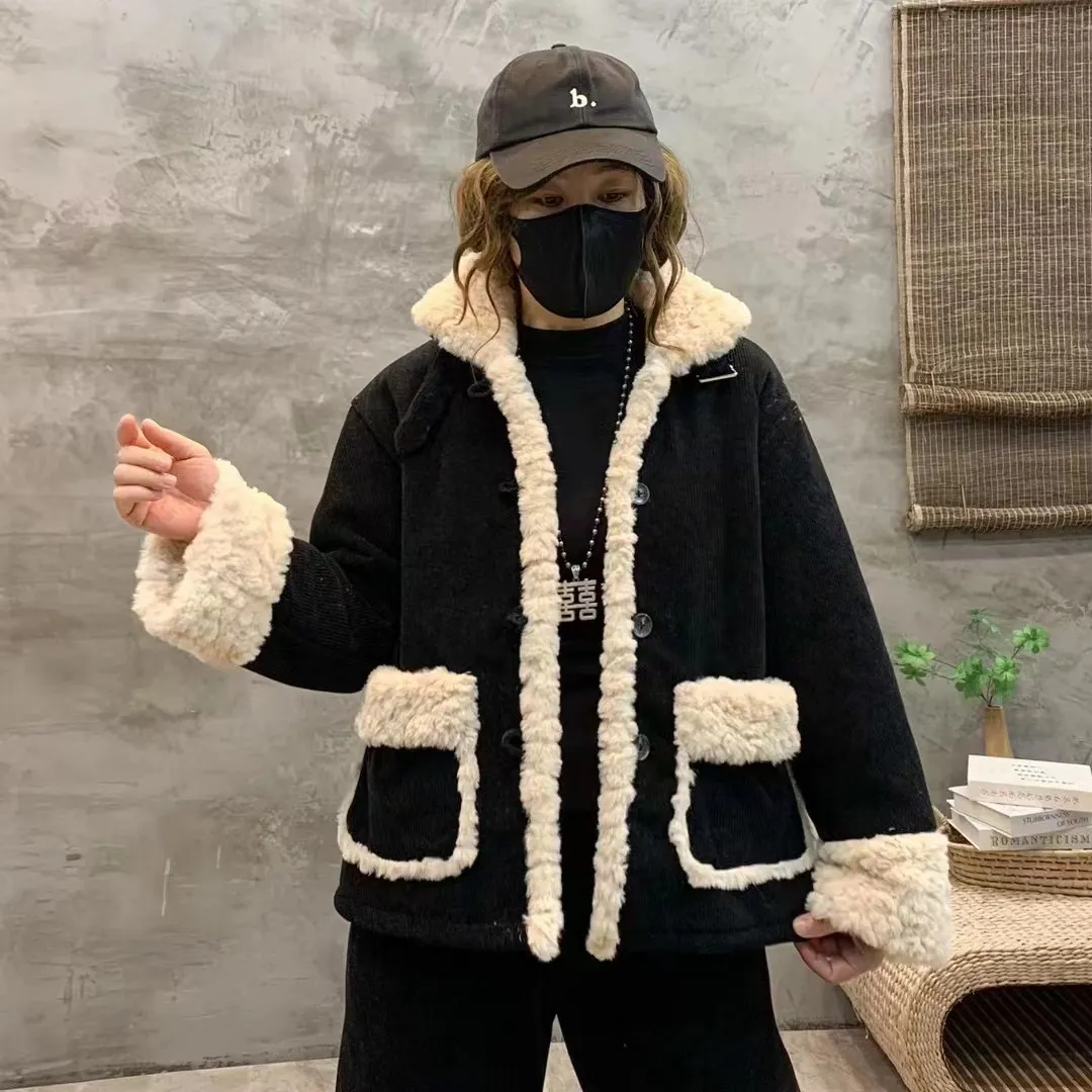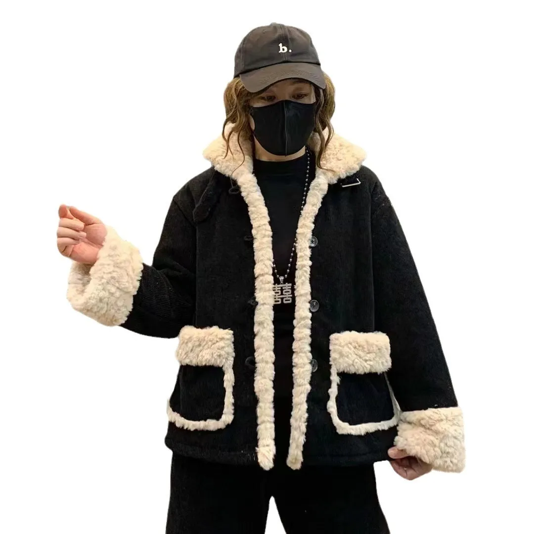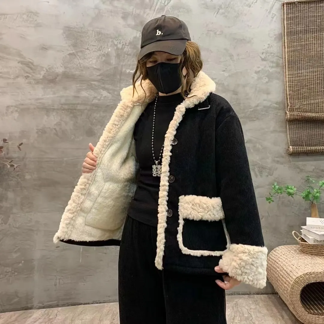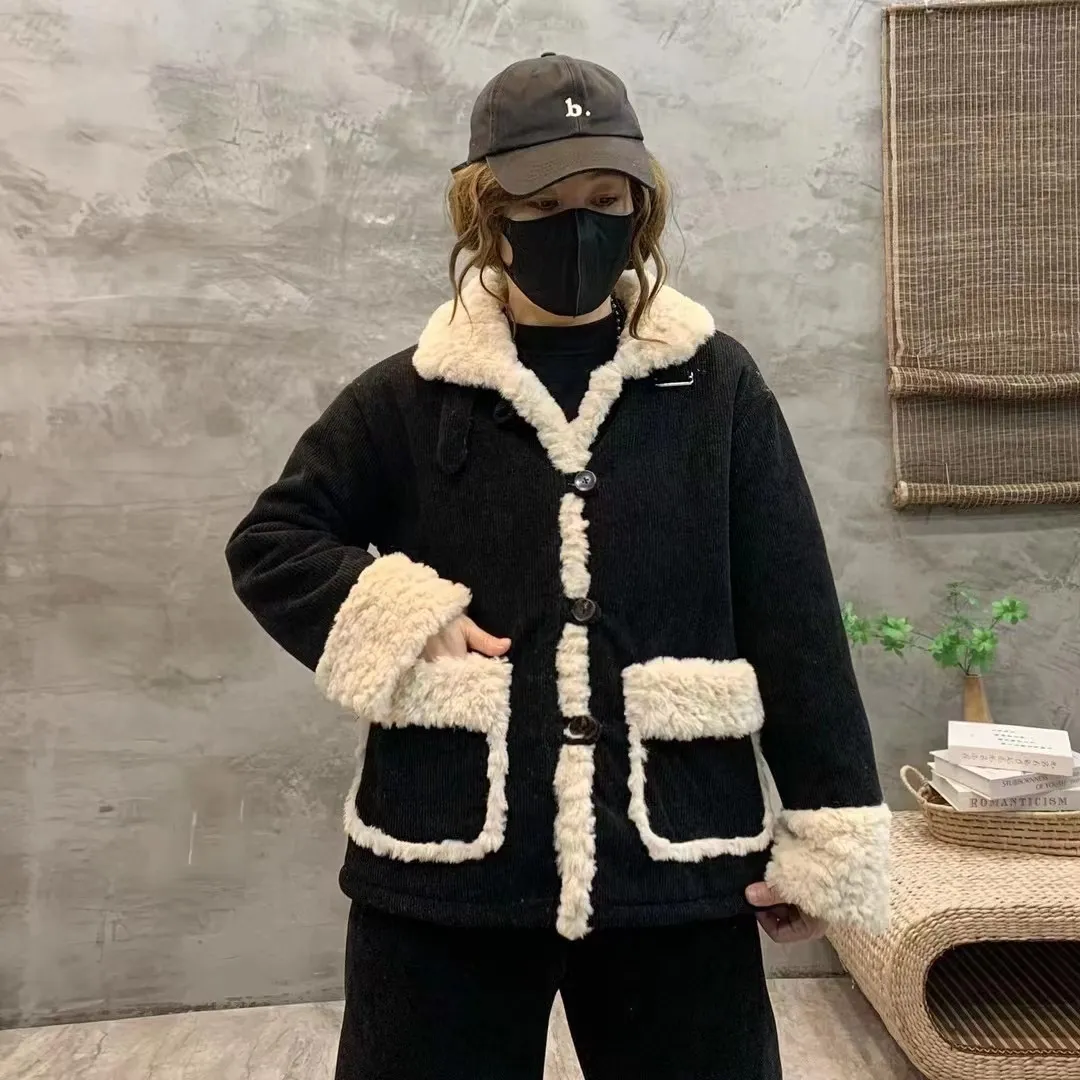 衣都精品- 2023新款大碼立領加絨厚實燈芯絨外套