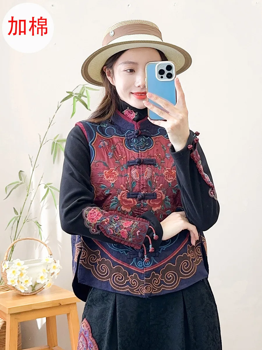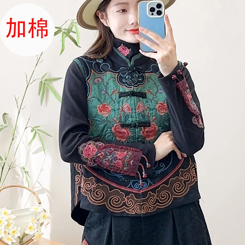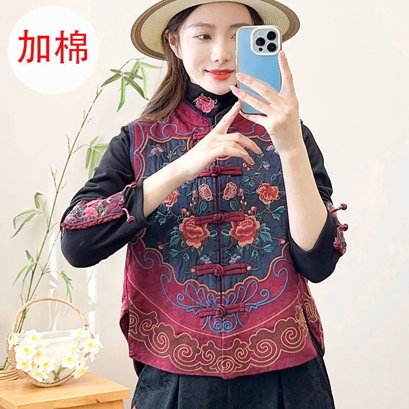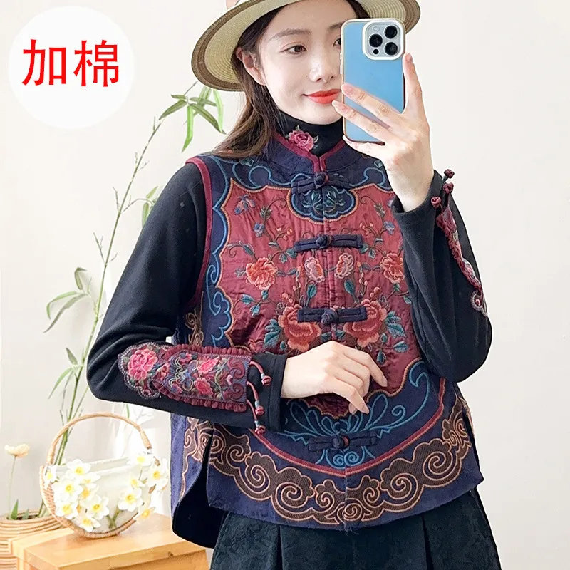 衣都精品- 2023新款民族風盤扣大碼保暖無袖外套