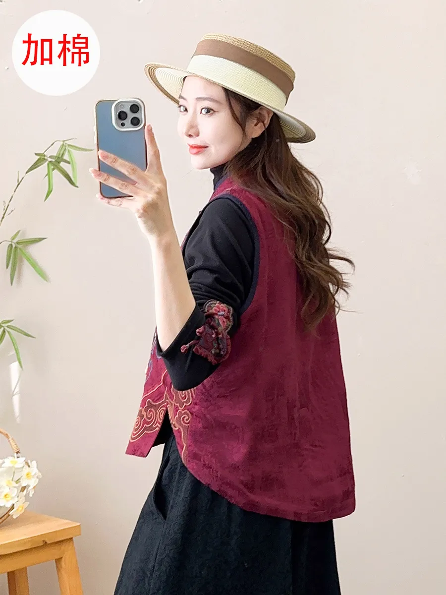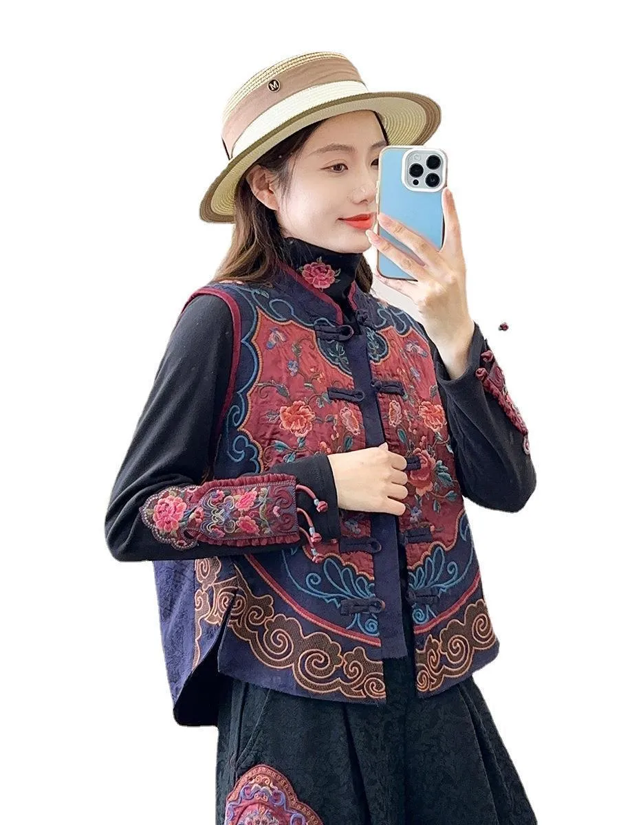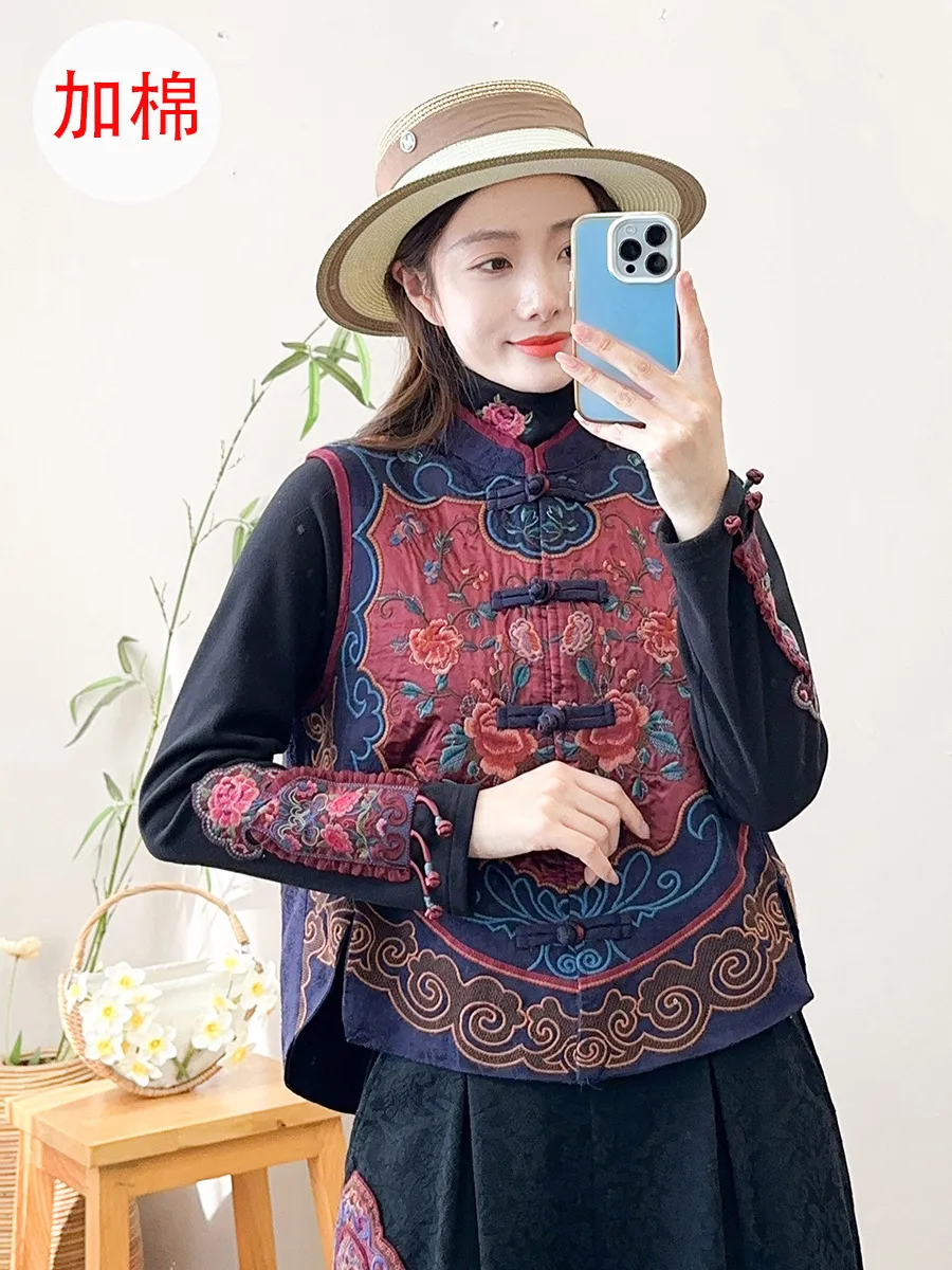 衣都精品- 2023新款民族風盤扣大碼保暖無袖外套