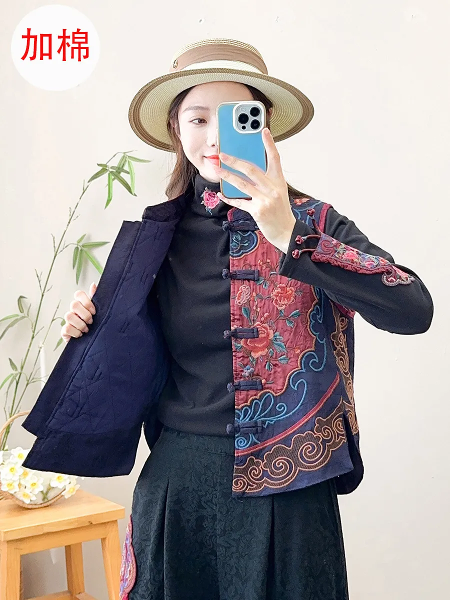衣都精品- 2023新款民族風重工刺繡加棉緞面盤扣外套