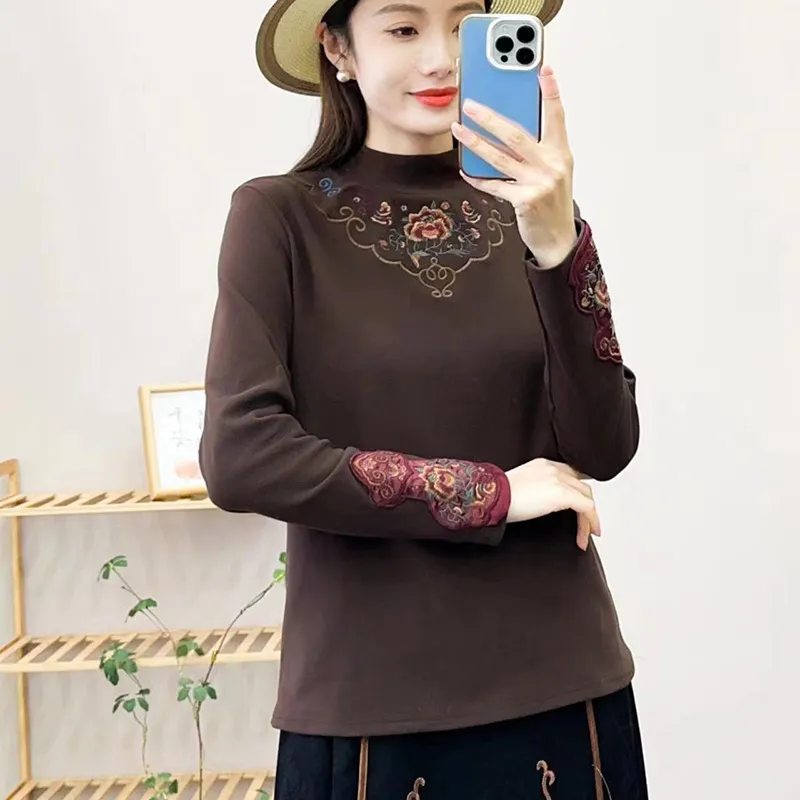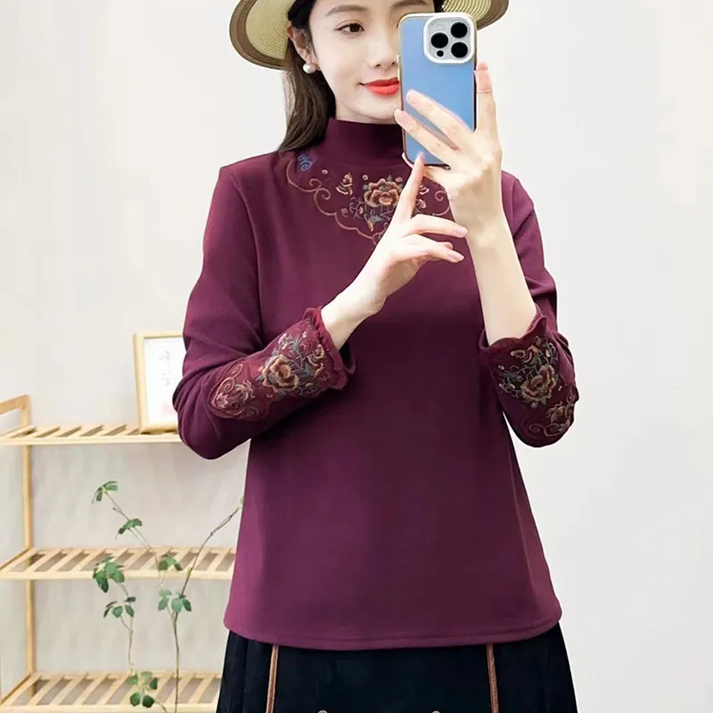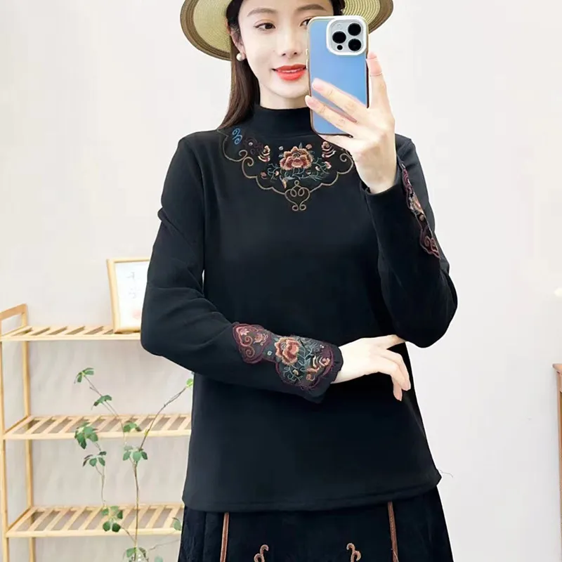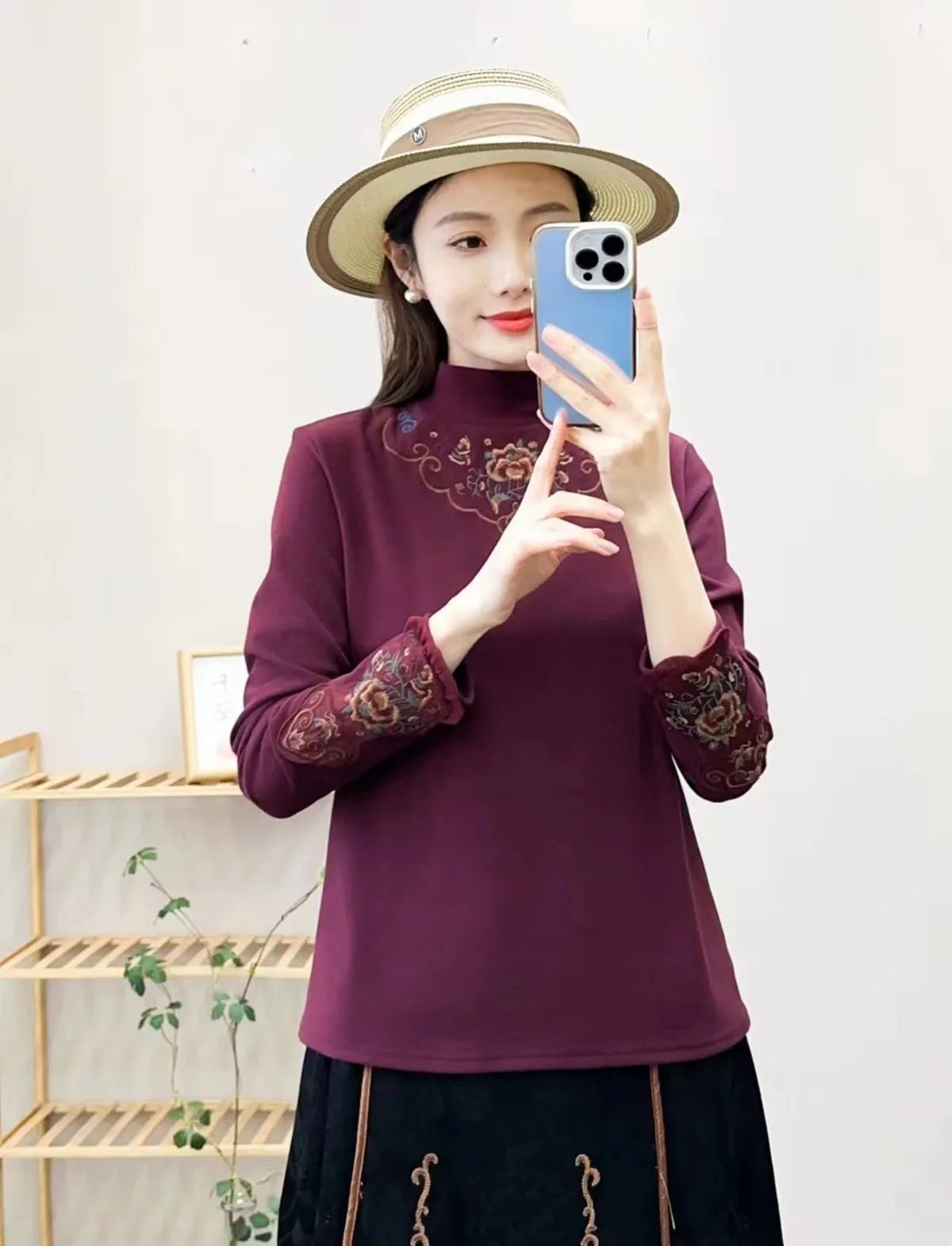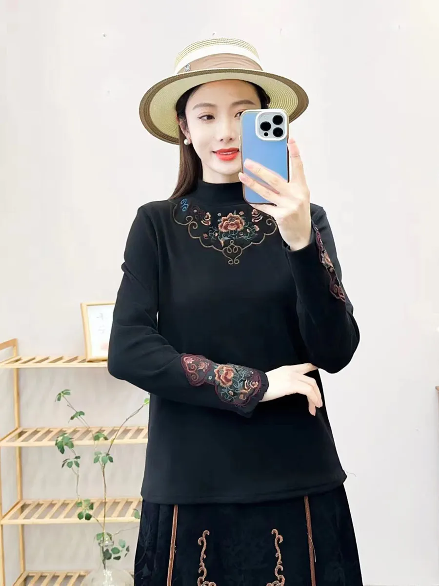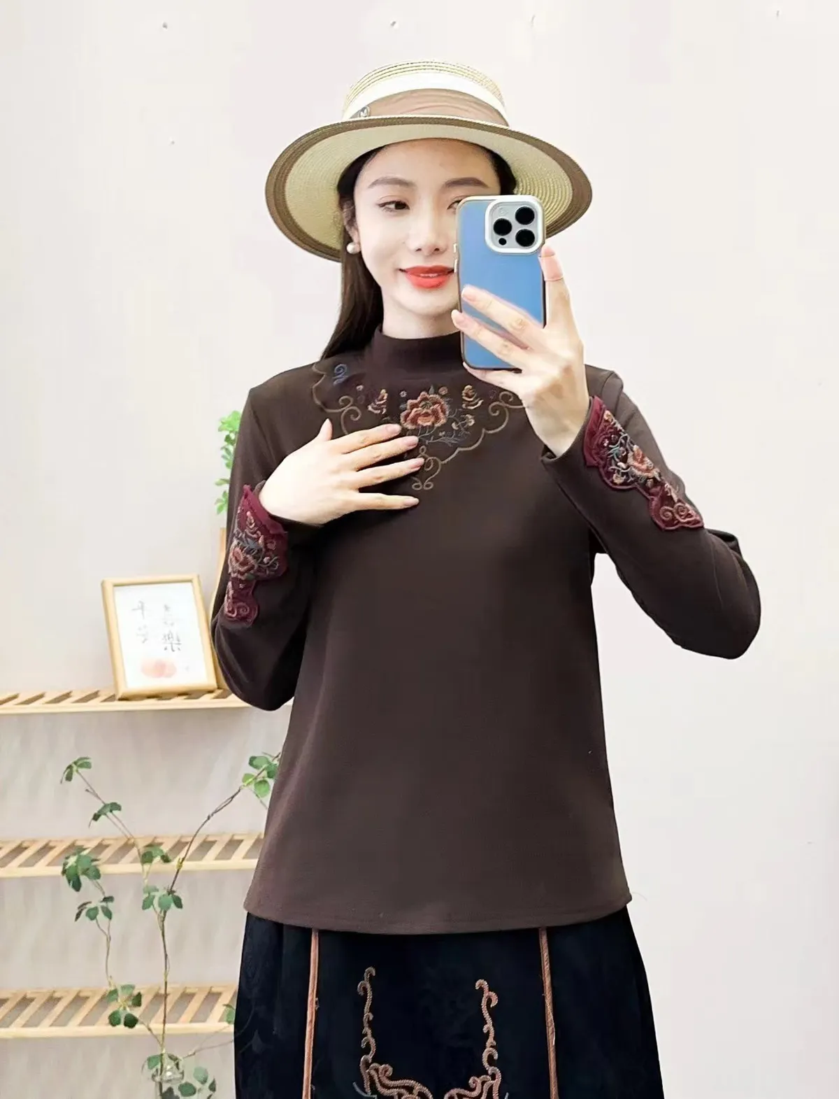 衣都精品- 2023新款加厚德絨中國風領口袖口刺繡上衣