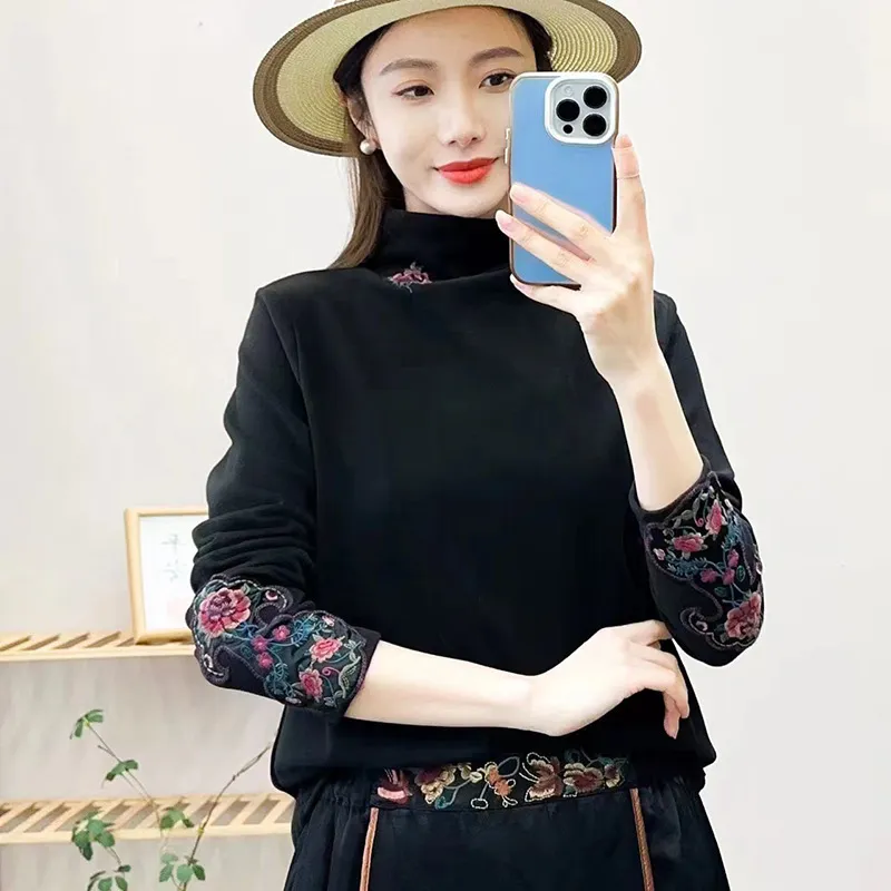 衣都精品- 2023新款加厚德絨中國風領口袖口刺繡上衣