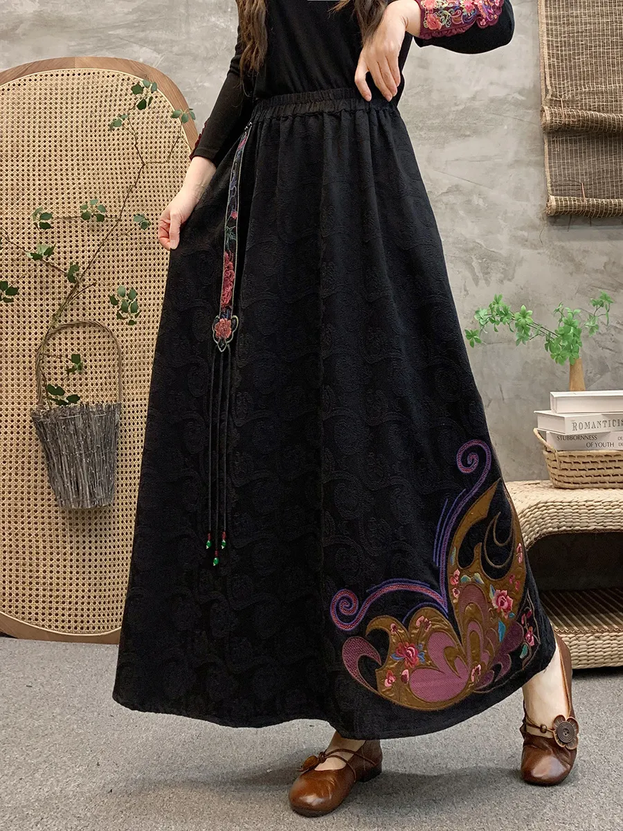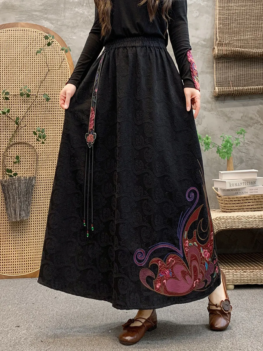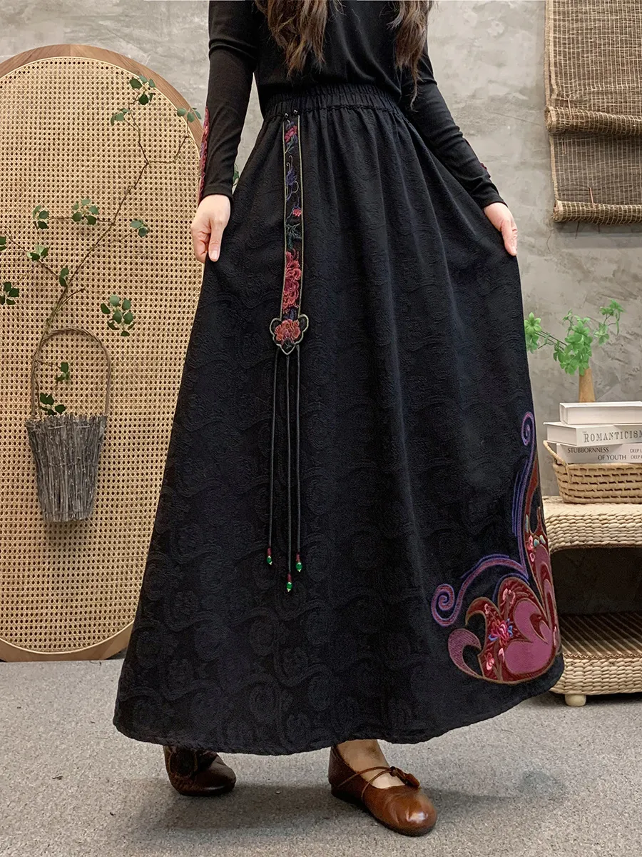 衣都精品- 2023新款民族風貼布繡花刺繡流蘇半身裙