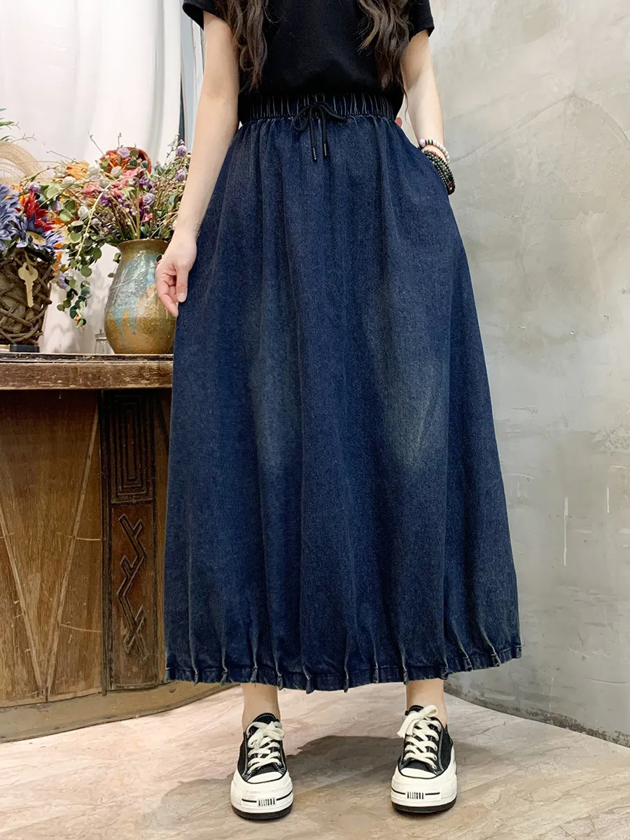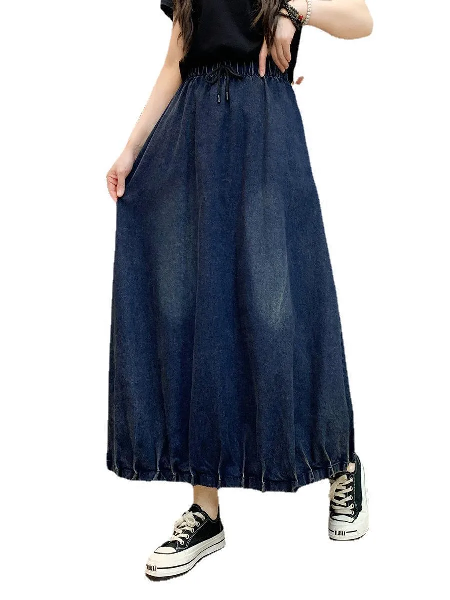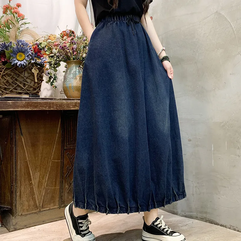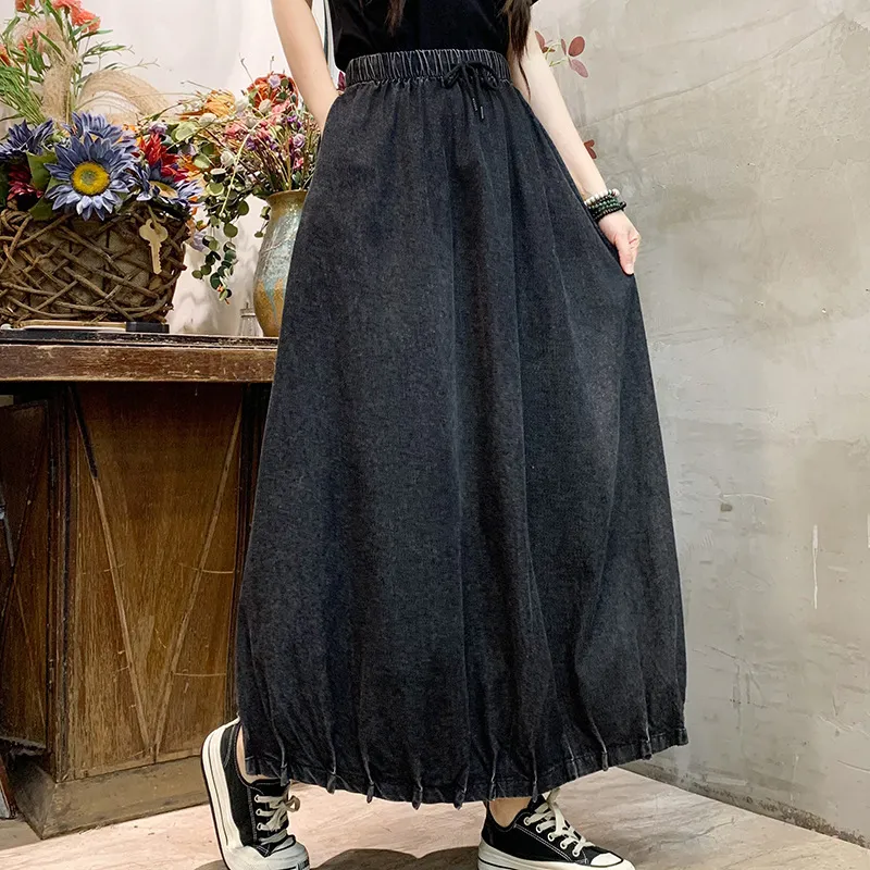 衣都精品- 2023新款休閒砂洗鬆緊腰抽繩牛仔半身裙