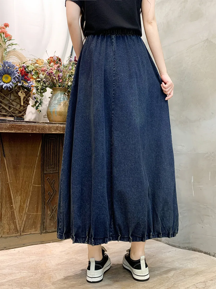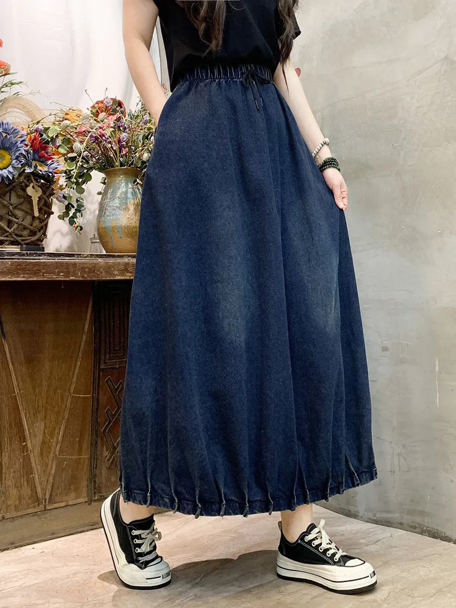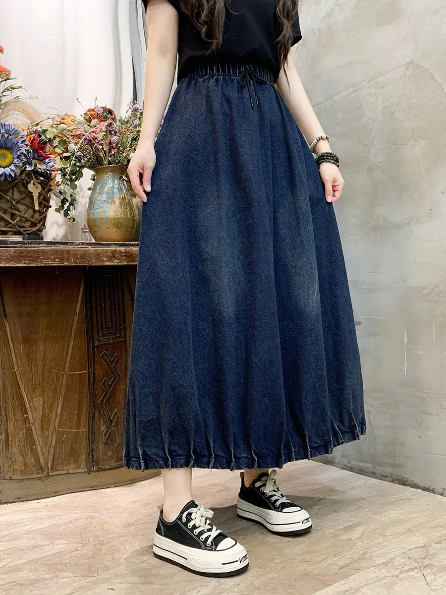 衣都精品- 2023新款休閒砂洗鬆緊腰抽繩牛仔半身裙