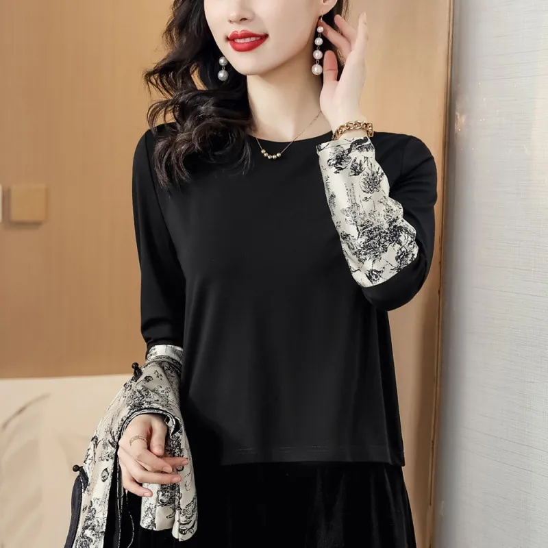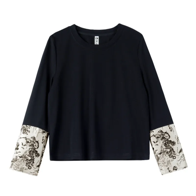 衣都精品- 2023新款圓領修身水墨畫提花長袖上衣
