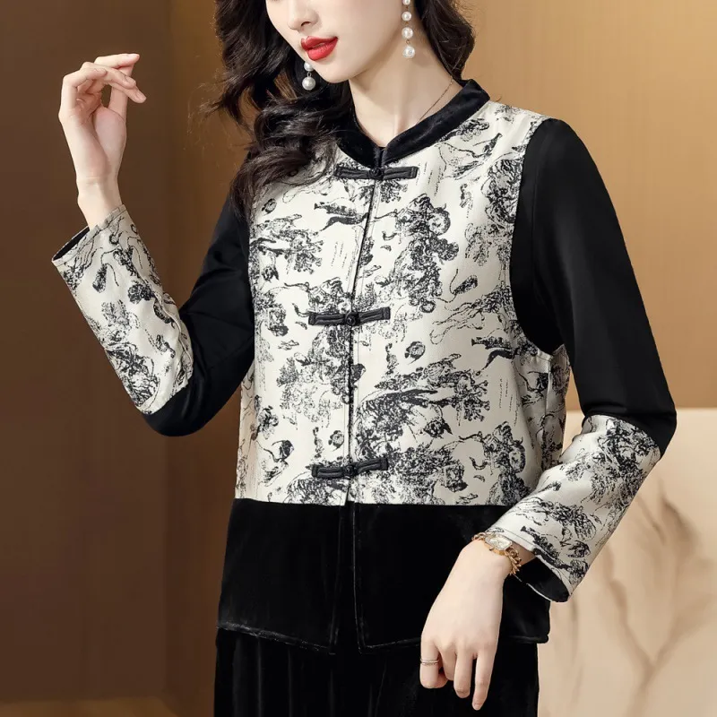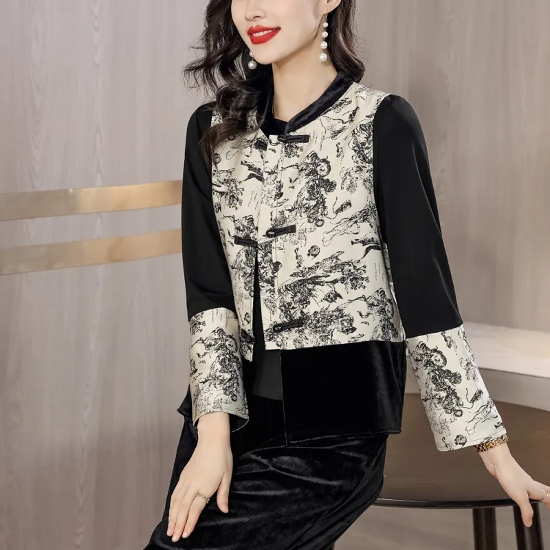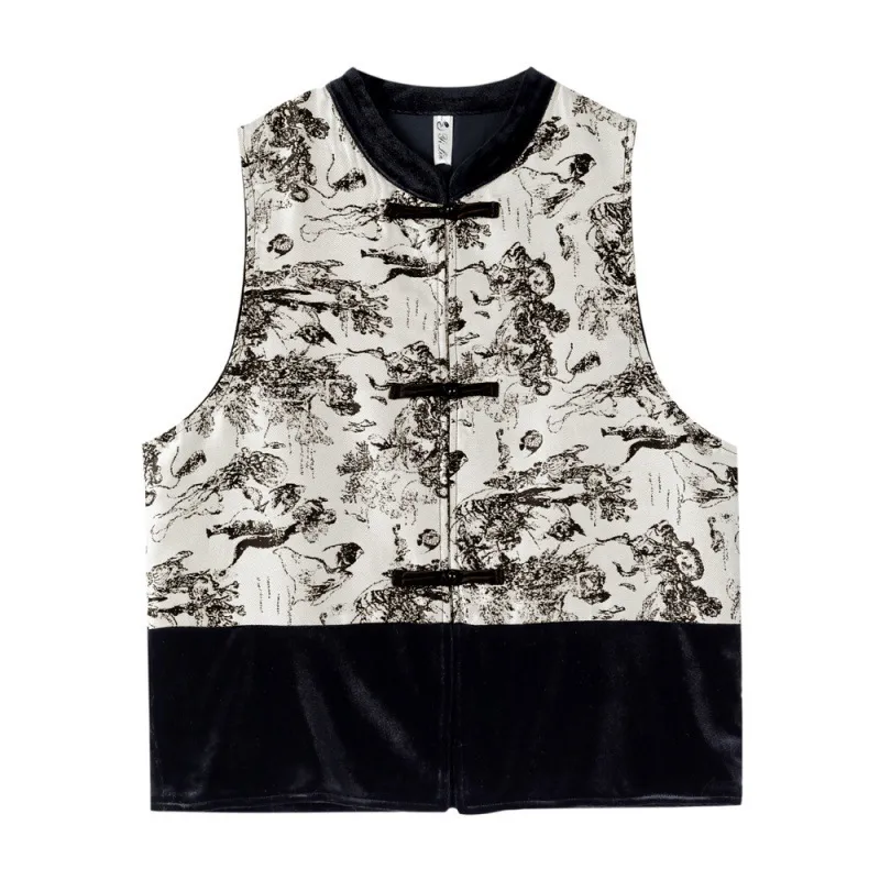 衣都精品- 2023新款水墨畫立領復古盤扣背心